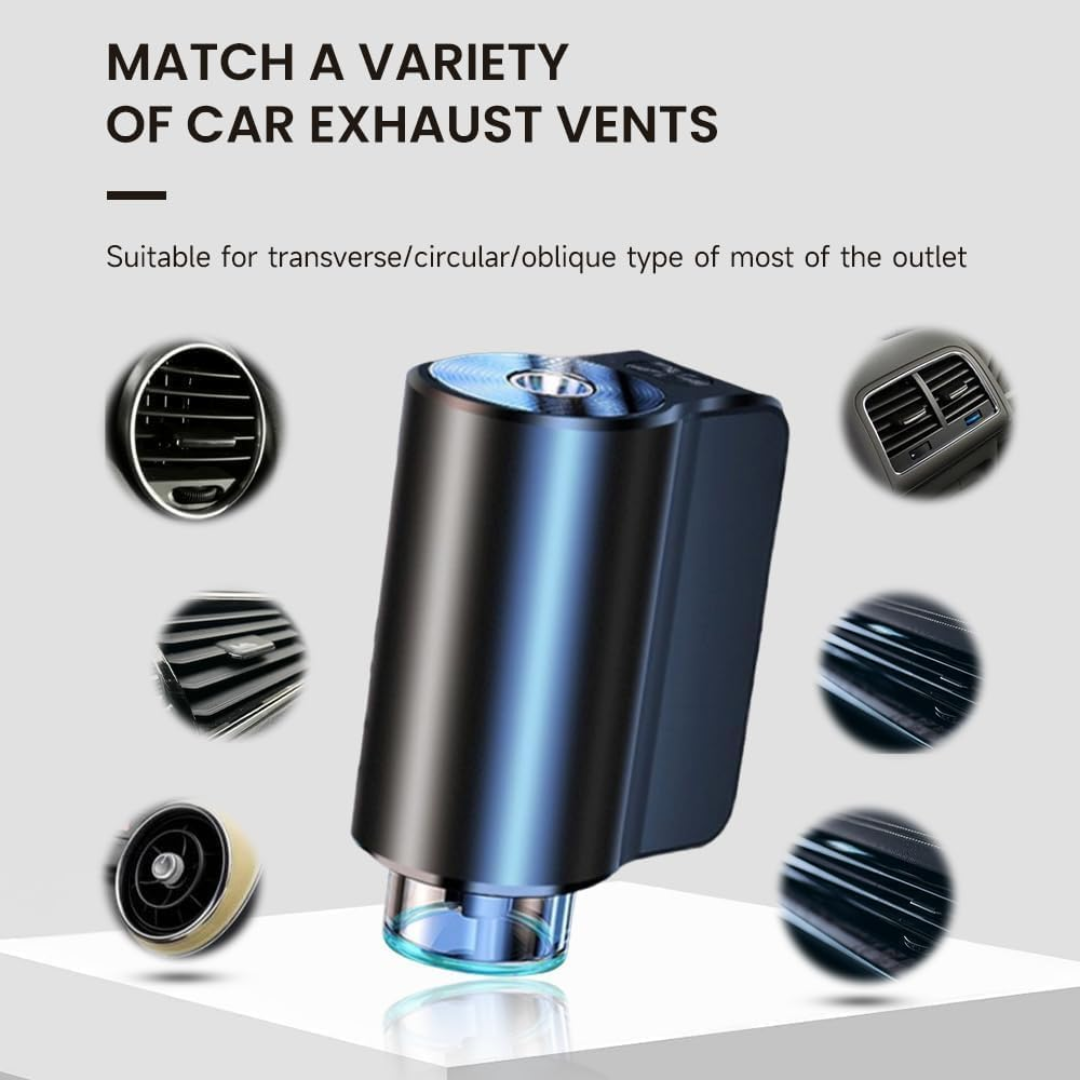 Compatibilitatea universală auto îți permite să-l fixezi ușor în ventilația mașinii tale, oferindu-ți o experiență plăcută și revitalizantă. Echipat cu o baterie de 220mAh, este suficient de puternic pentru a funcționa în mod continuu, oferindu-ți un aer proaspăt și parfumat în mașină.