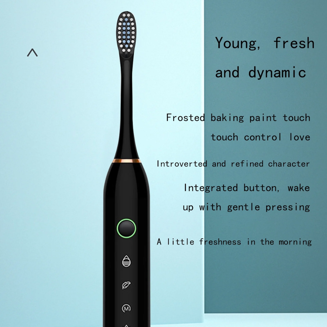Periuța de dinți electrică sonică neagră oferă o curățare eficientă și delicată, cu 4 capete și 6 programe de utilizare.