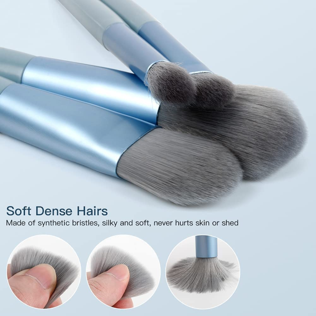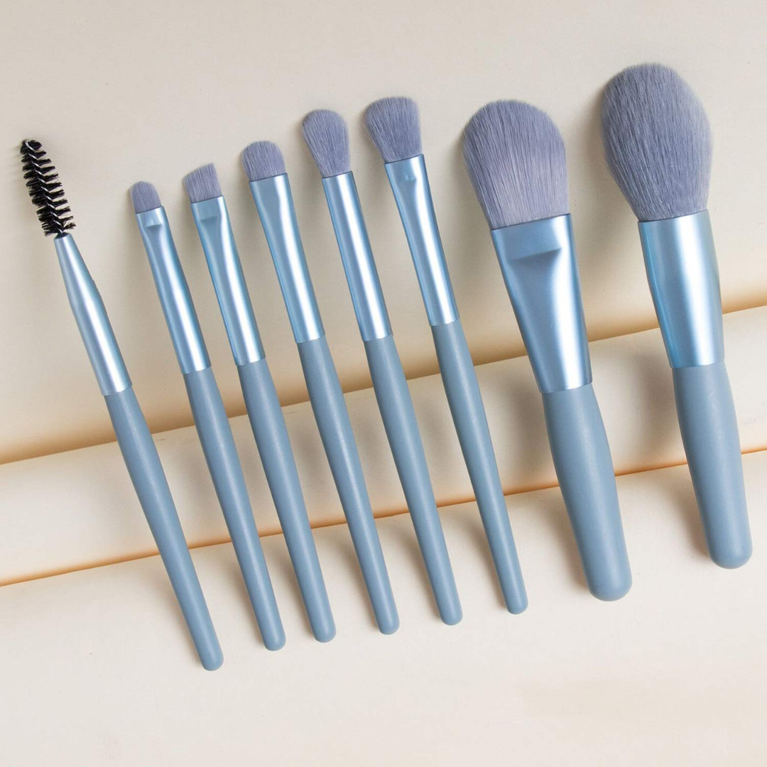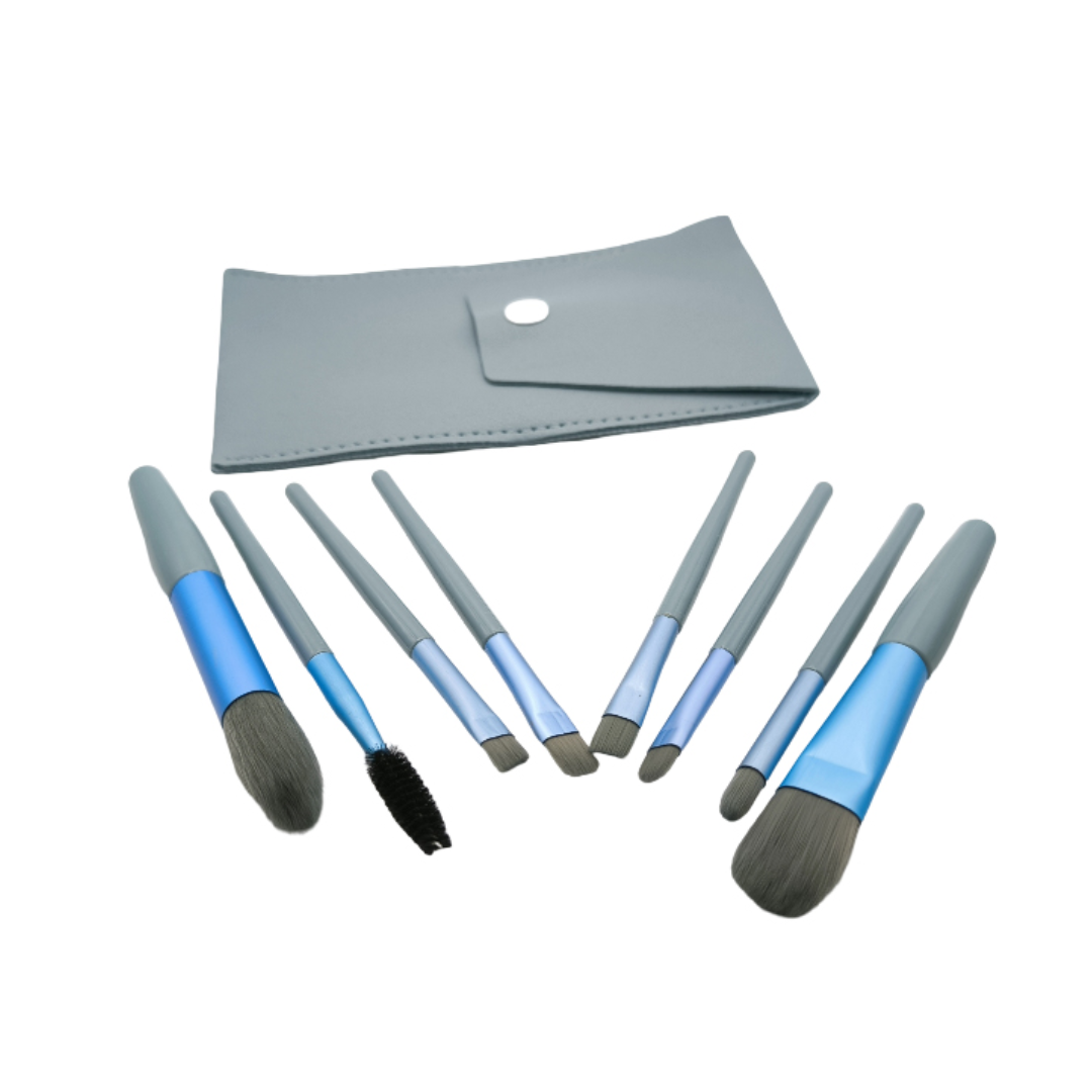 Set 8 pensule machiaj cu husă de depozitare, Albastru