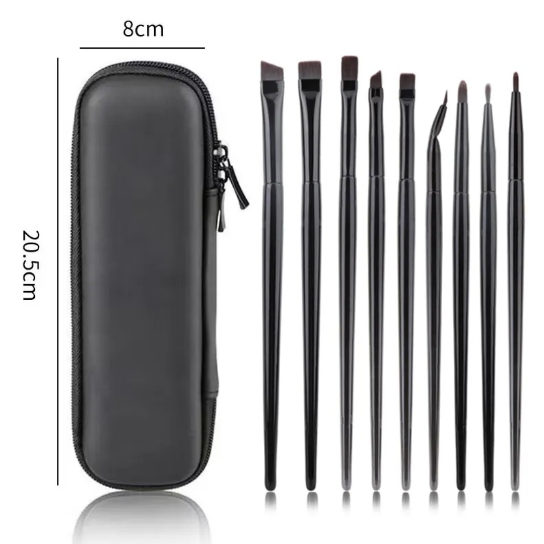 Trusă de 9 pensule pentru machiajul ochilor, cu etui din piele ecologică, perfectă pentru detalii fine și tehnici precise de machiaj.