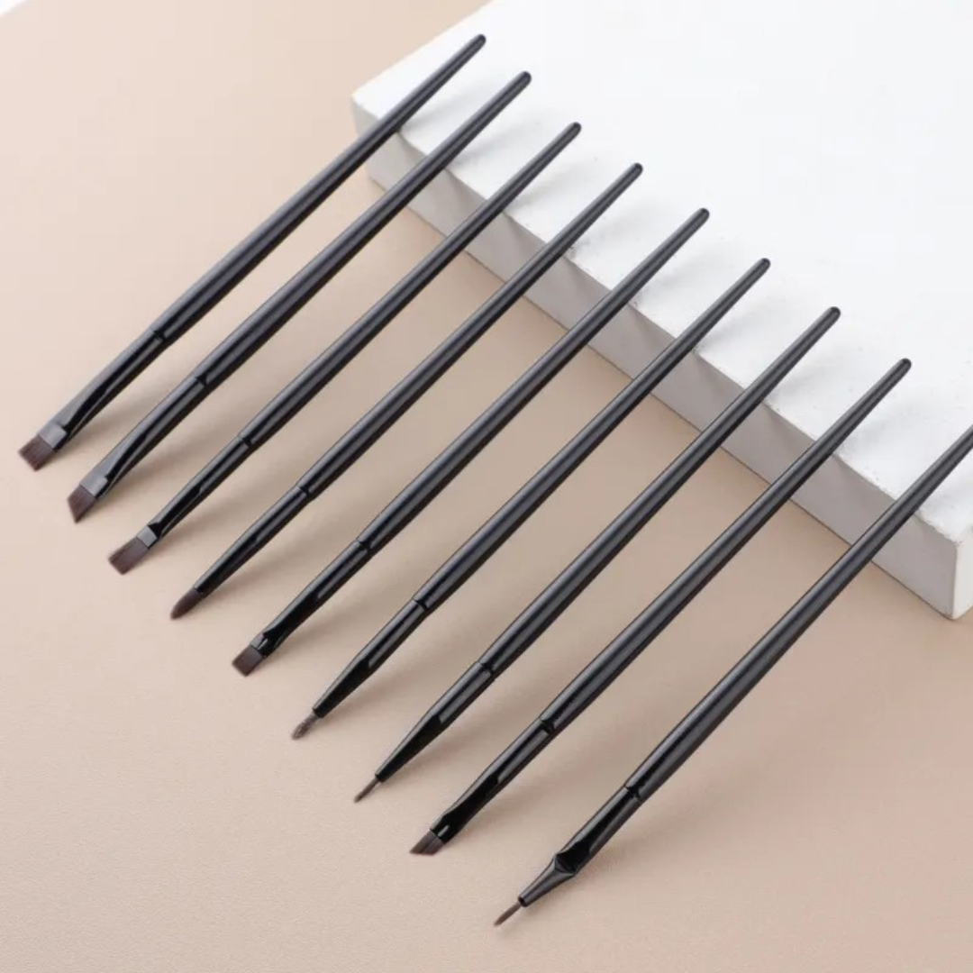 Această trusă de 9 pensule pentru machiajul ochilor este esențială pentru orice pasionată de machiaj, fie că ești profesionist sau începător. Setul este special conceput pentru a aplica și a amesteca fardurile de pleoape, a contura ochii, a aplica eyelinerul și a lucra pe detalii fine, oferindu-ți toate uneltele necesare pentru un machiaj precis și elaborat.