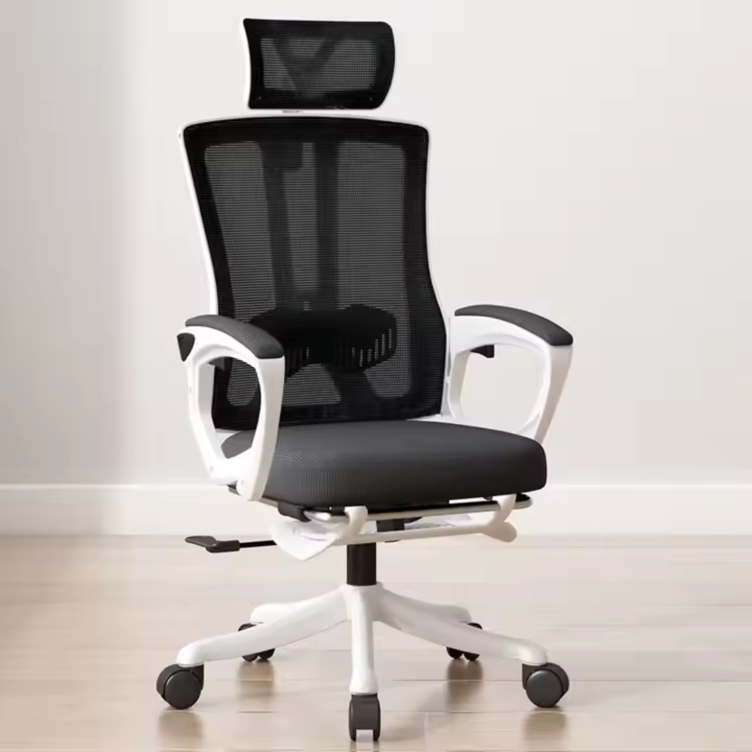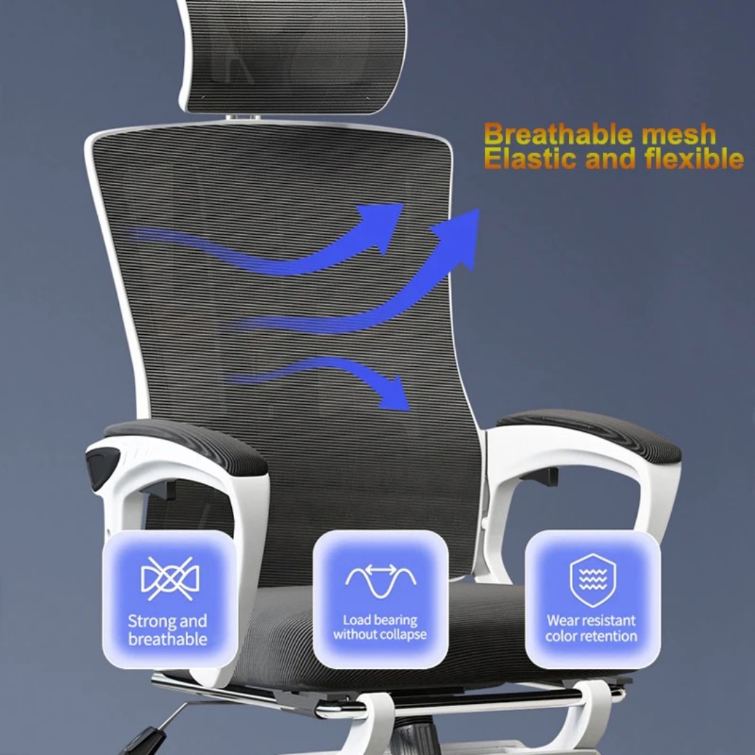 Scaun ergonomic reglabil, cu suport lombar, tetieră 3D, funcție Swing și suport pentru picioare, ideal pentru birou.