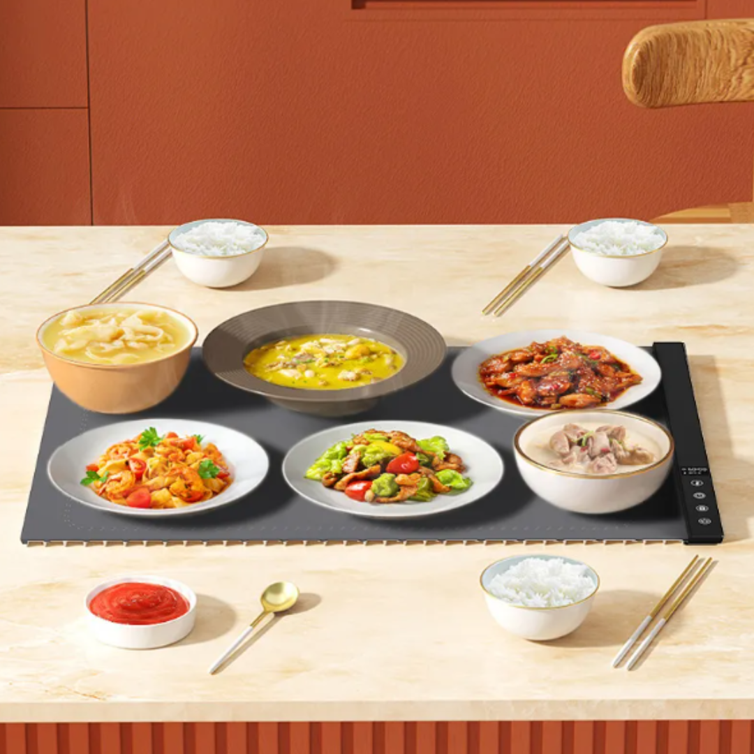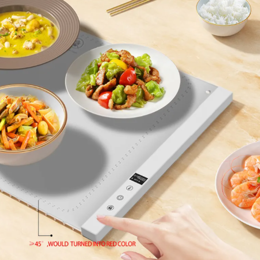 Covoraș de încălzire din silicon pentru menținerea alimentelor calde, ideal pentru bucătărie și evenimente.