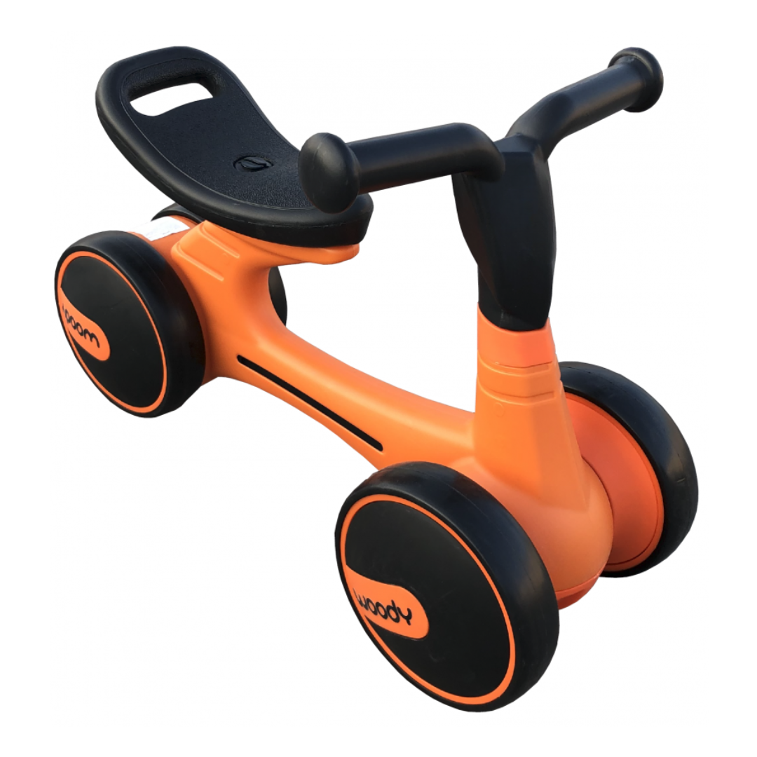 Bicicletă fără pedale cu 4 roți, design inovator pentru dezvoltarea coordonării și echilibrului la copii.
