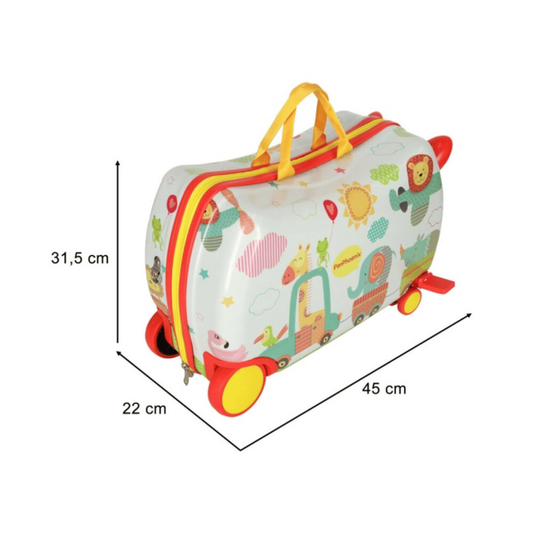 Descoperiți noul troler ride-on pentru copii, un accesoriu perfect pentru călătorii confortabile și pline de distracție. Acest troler multifuncțional combină utilitatea unui bagaj de mână cu bucuria unui vehicul ride-on, fiind ideal pentru cei mici. Cu un design atractiv și culori vibrante, acest troler cu model zoo va deveni rapid preferatul copiilor dumneavoastră.