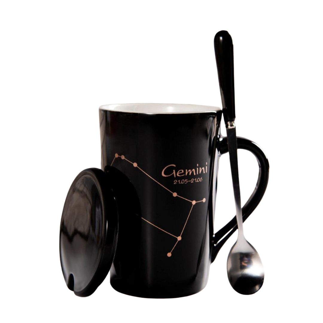 Set cadou cana ceramica, culoare Negru, Gemeni