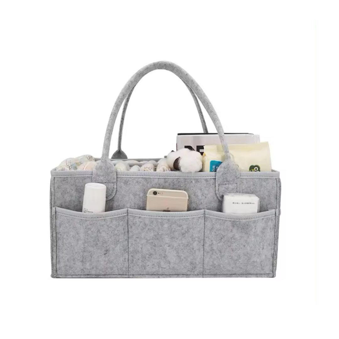 Geantă organizator pentru scutece și accesorii copii, din fetru, cu multiple compartimente, ideală pentru călătorii.