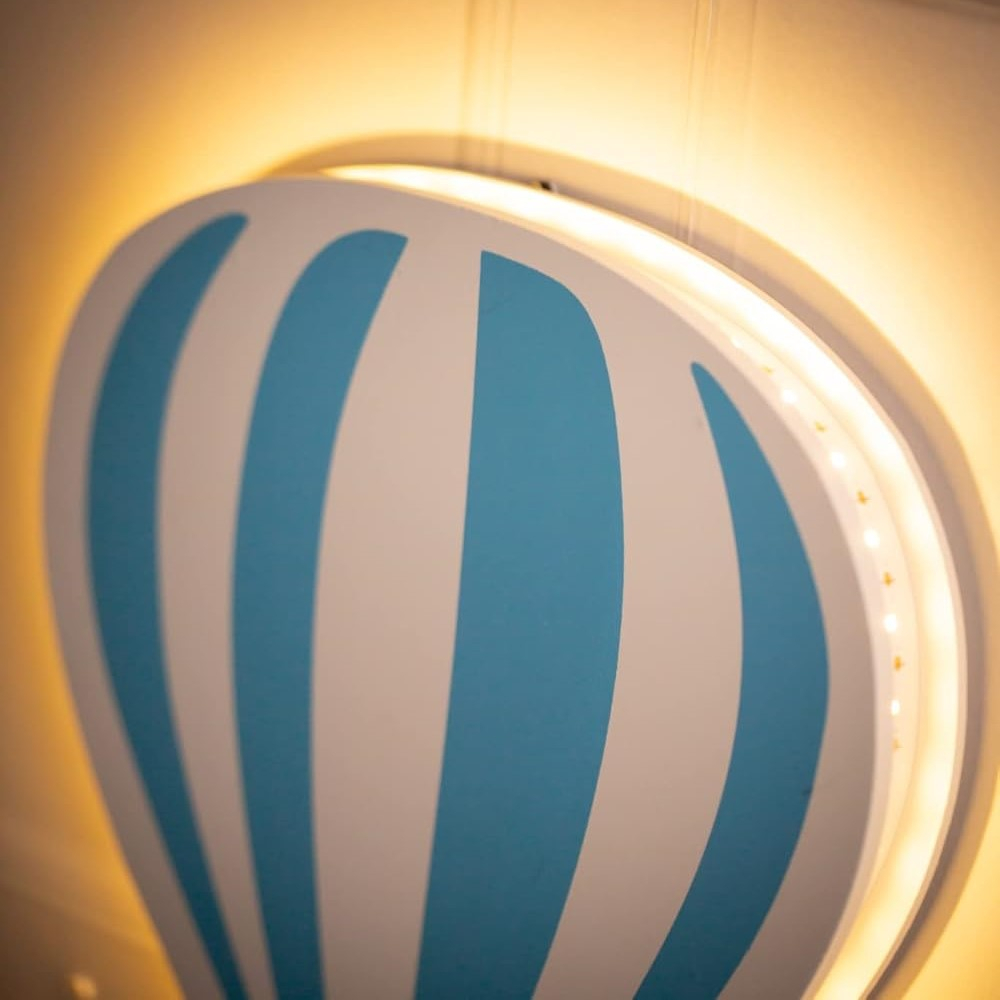 Lampă decorativă pentru perete, model balon aer cald, cu lumină caldă. Un accesoriu practic și estetic, perfect pentru a crea o atmosferă relaxantă în camera copiilor.