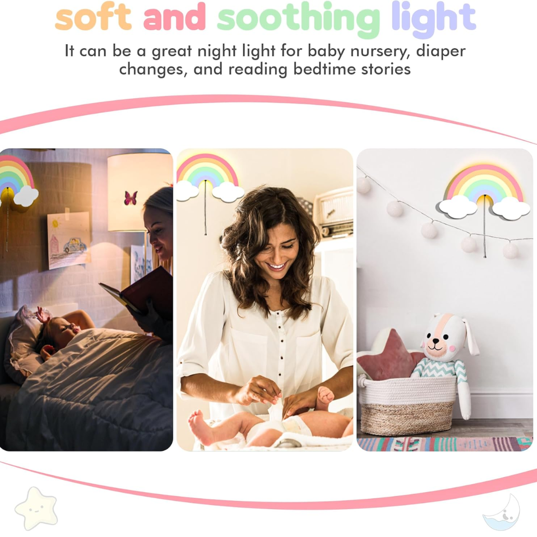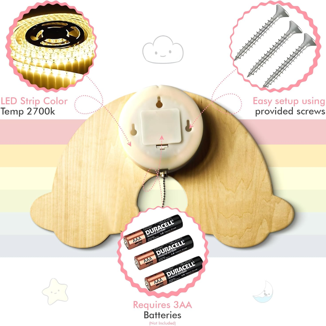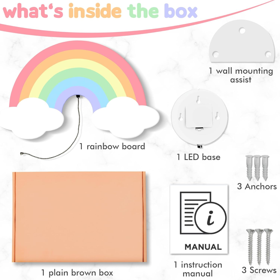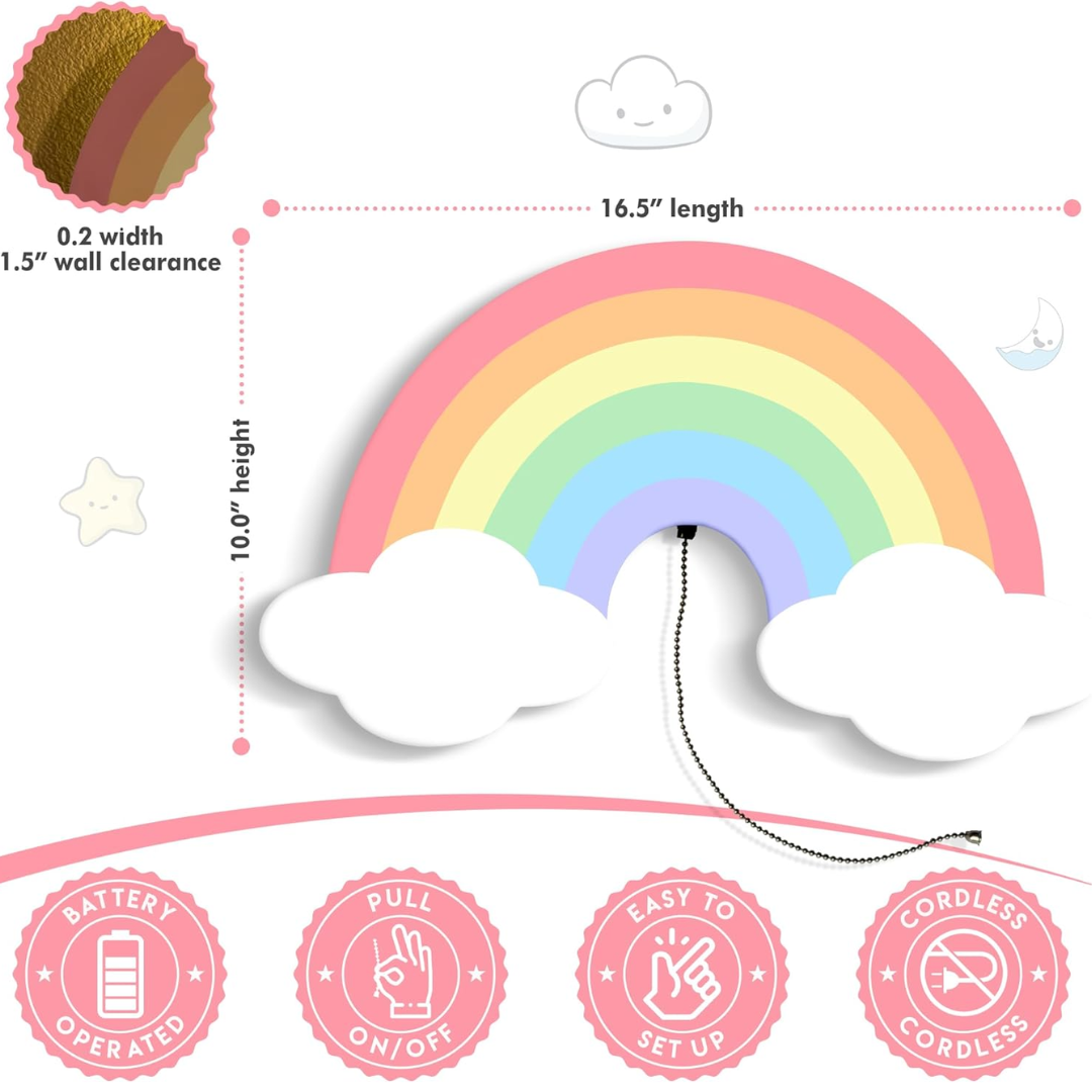 Această lampă decorativă în formă de curcubeu, cu dimensiunea de 32 cm, este un accesoriu minunat pentru camera copilului, oferind o atmosferă veselă și relaxantă. Proiectată pentru montaj pe perete, ocupă puțin spațiu și poate fi instalată cu ușurință, fiind ideală pentru orice colț al camerei.