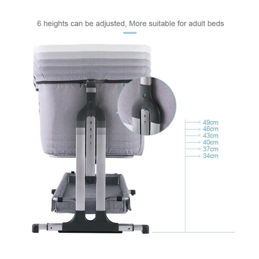 Acest pătuț reglabil în 4 poziții oferă bebelușului un somn confortabil și sigur, fiind perfect pentru părinți care doresc să-și țină micuțul aproape. Sistemul de atașare permite amplasarea pătuțului lângă patul părinților, garantând acces rapid și ușor la bebeluș.