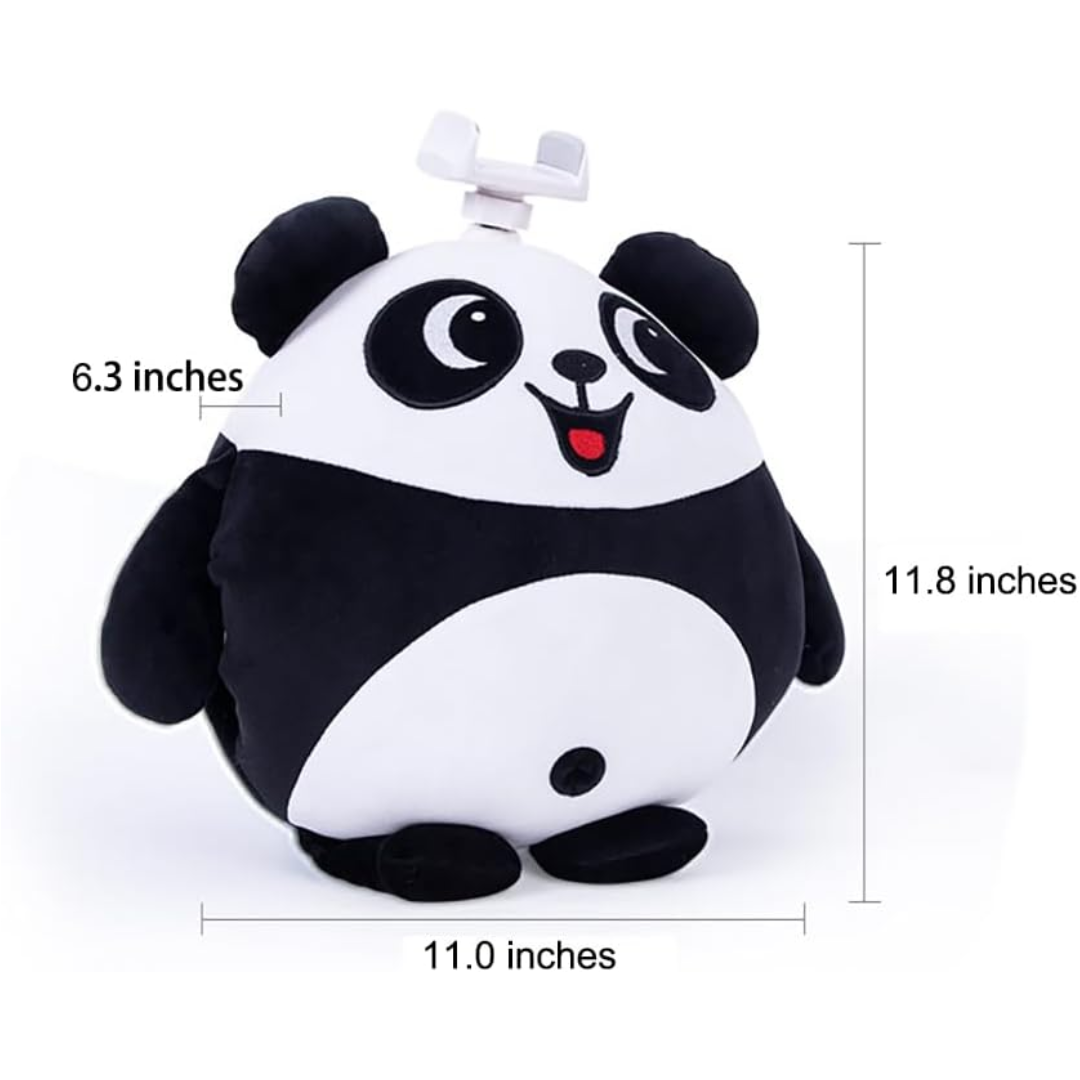 Pernă tip animăluț, model panda, cu suport telefon și fante pentru brațe. Ideală pentru relaxare, citit sau vizionare de filme, oferind confort și funcționalitate.