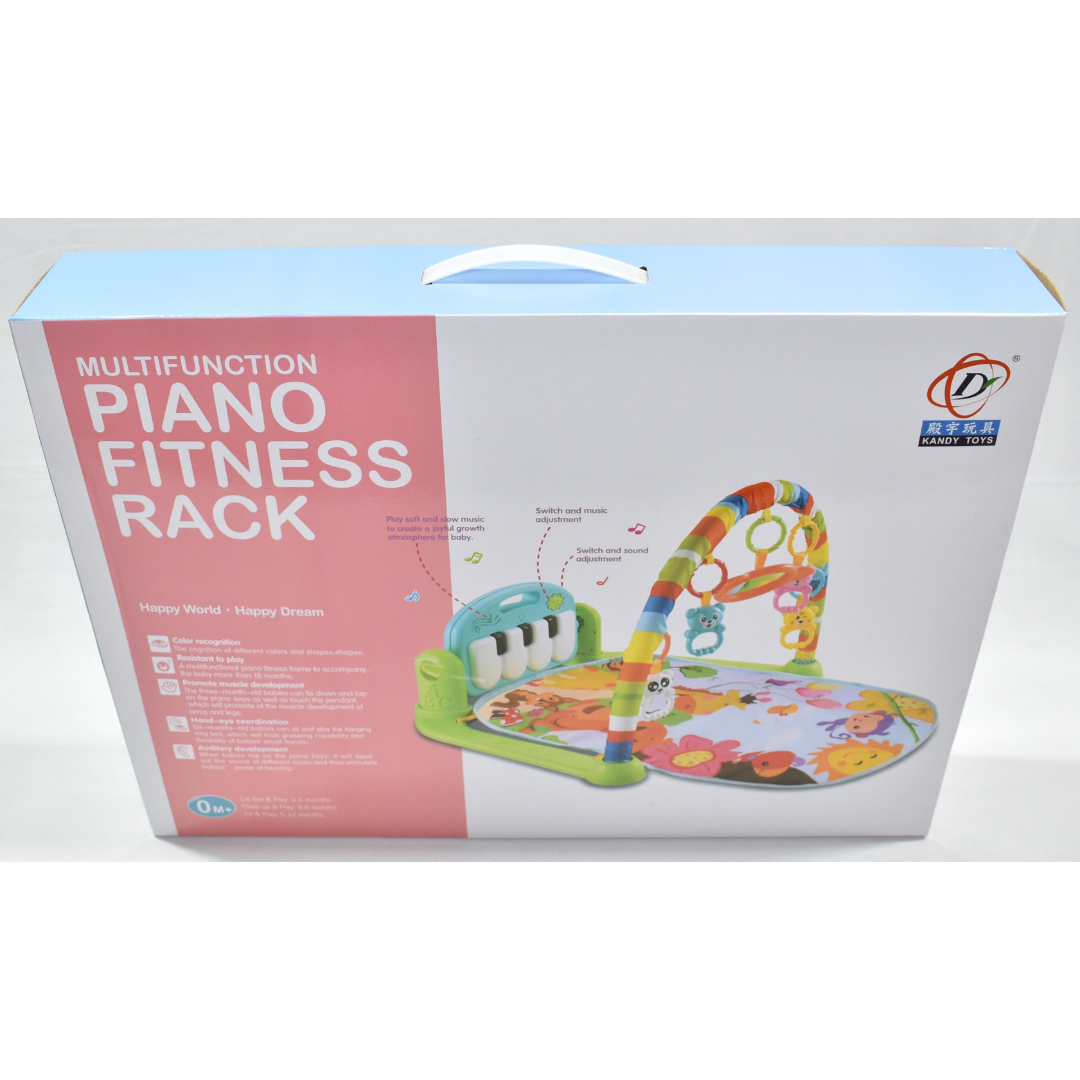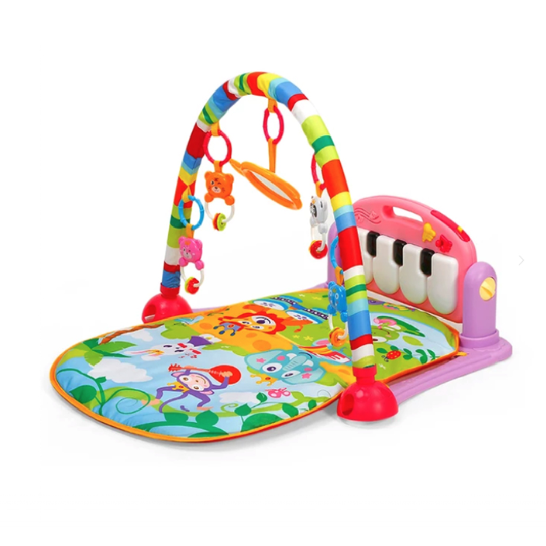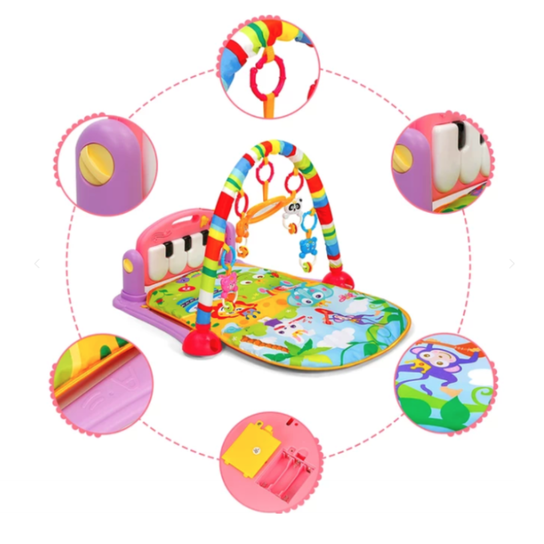Setul include un pian electronic, alimentat cu baterii, montat pe un cadru de plastic reglabil în diverse poziții pentru a se adapta nevoilor în continuă schimbare ale copilului. Cu lumini, sunete și jucării zornăitoare, acest centru multifuncțional distrează și încurajează dezvoltarea cognitivă a copilului tău.