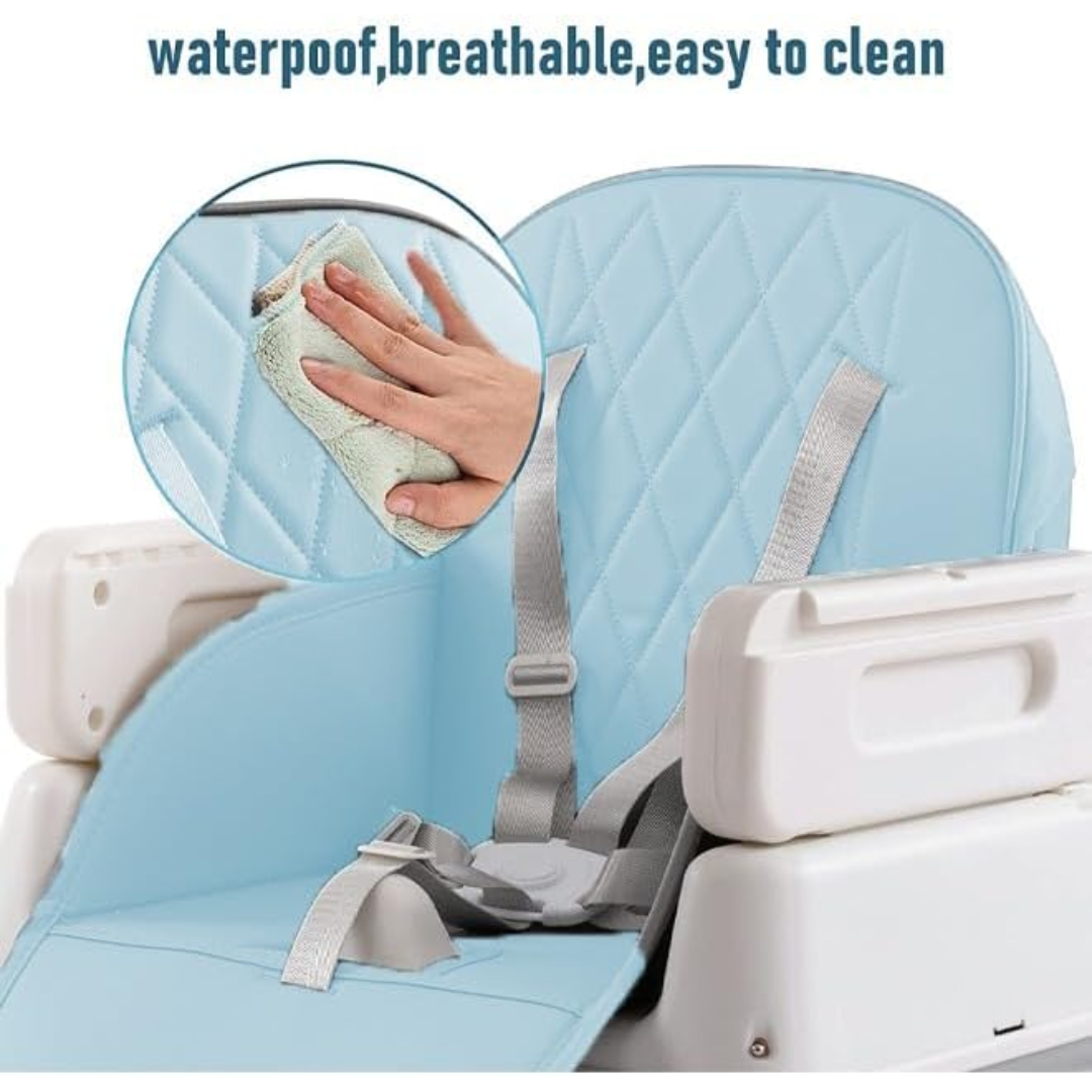 Scaun de masă pliabil 6 în 1, cu sistem de siguranță, ajustabil pe 3 trepte de înălțime, multifuncțional și ușor de curățat. Ideal pentru copii de la 6 luni, oferind confort și protecție.