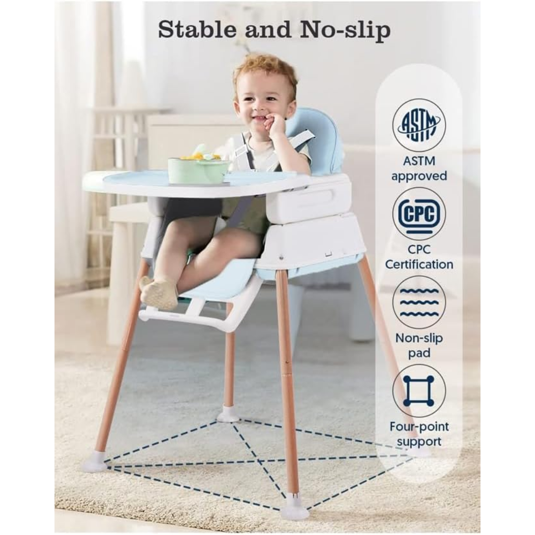 Acest scaun de masă 6 în 1 este soluția ideală pentru părinții care își doresc un produs sigur, confortabil și versatil pentru copiii lor. Recomandat de la vârsta de 6 luni, scaunul oferă suport optim în timpul mesei sau în momentele petrecute alături de familie.