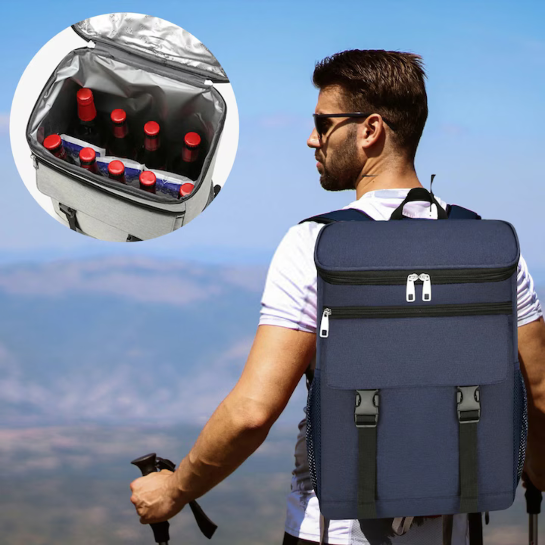 Rucsac frigorific si izoterm 25L, impermeabil, ajustabil, buzunare laterale, ideal pentru picnic si drumetii, Bleumarin