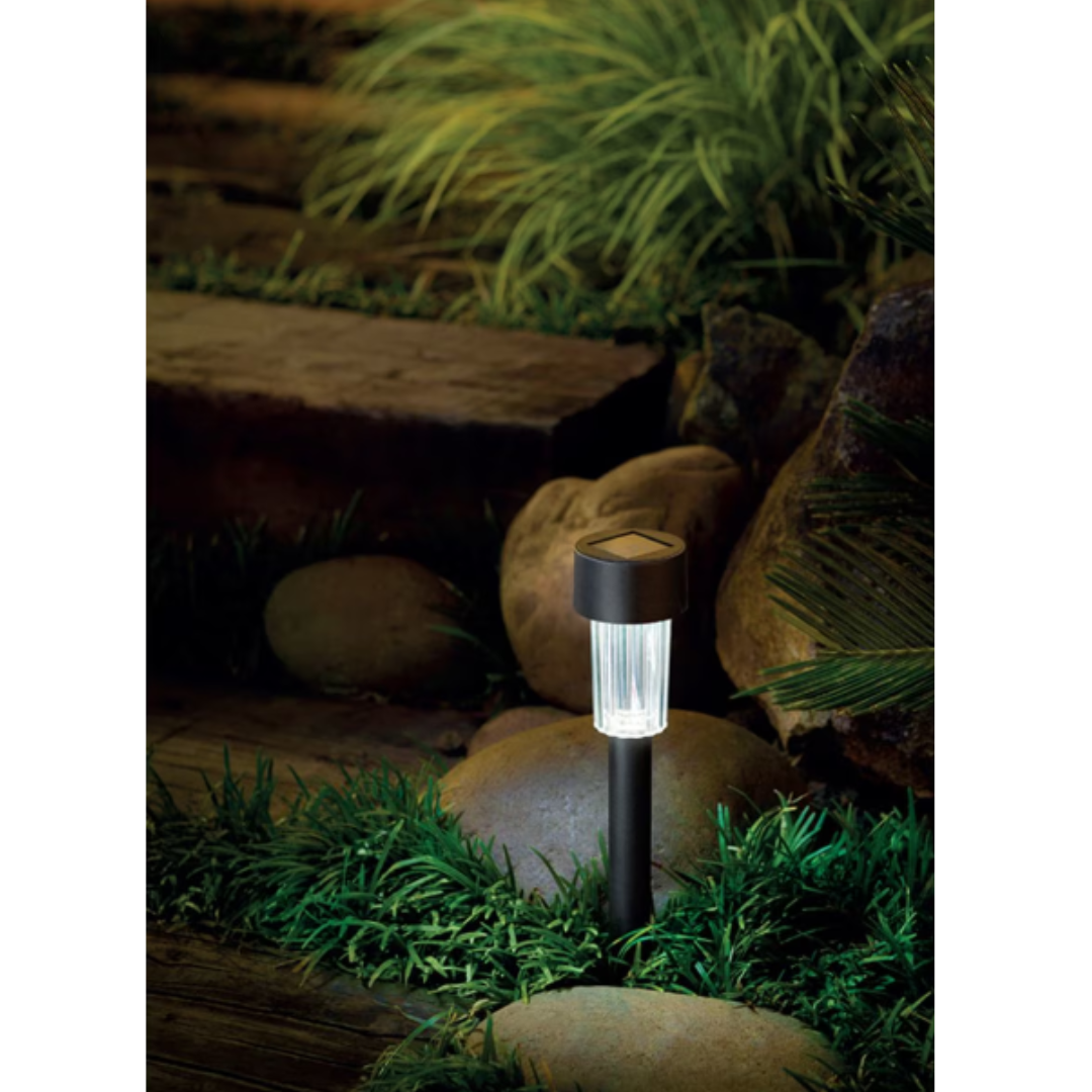 Lampă solară LED, eficientă și elegantă, cu țăruș pentru montare rapidă în grădină.