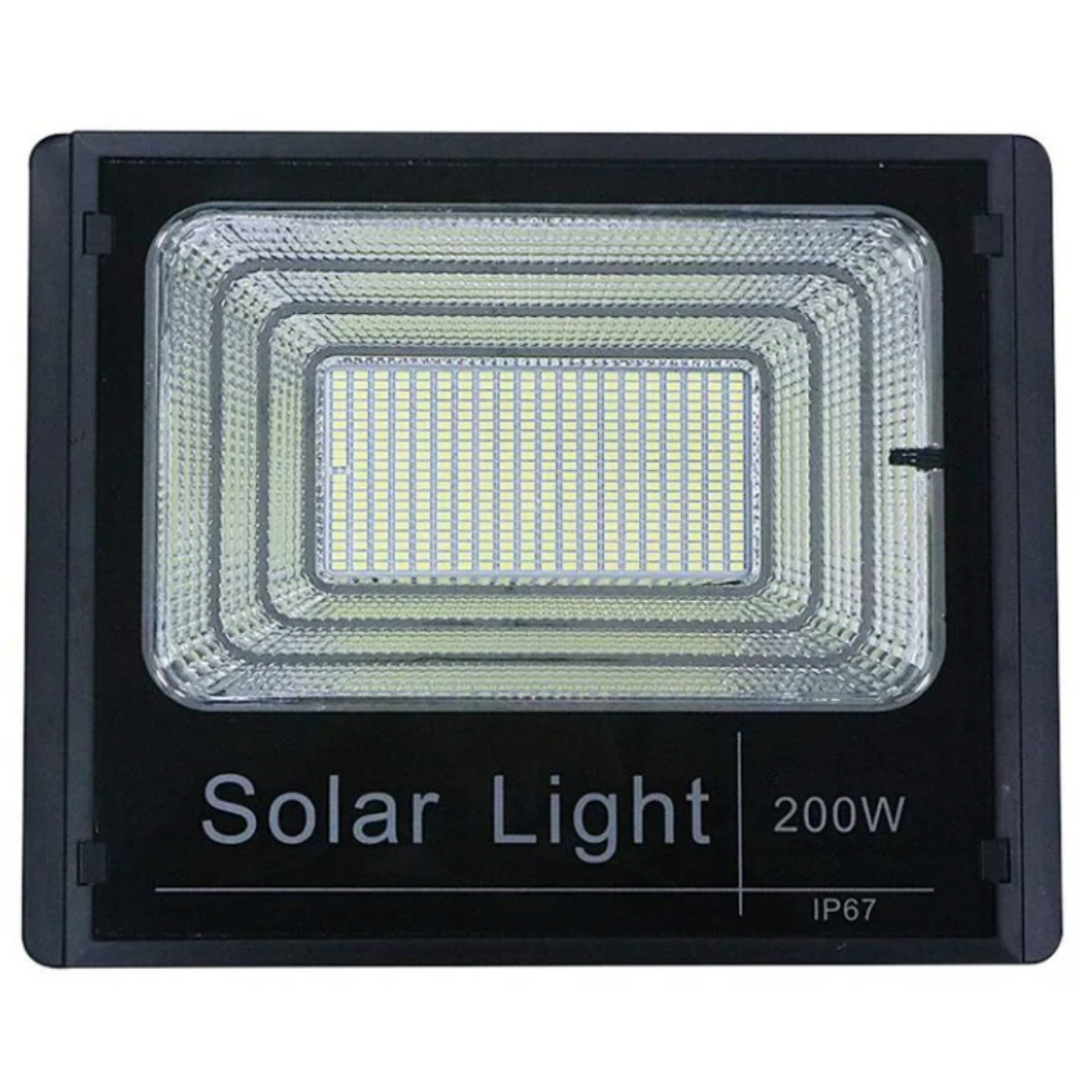 Proiector LED solar, de exterior, 200W, cu senzor, timer și telecomandă, ideal pentru iluminare eficientă.