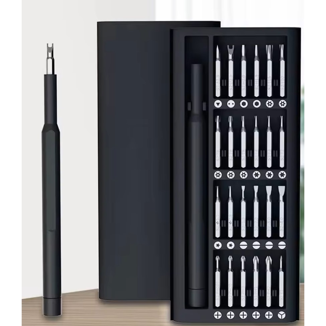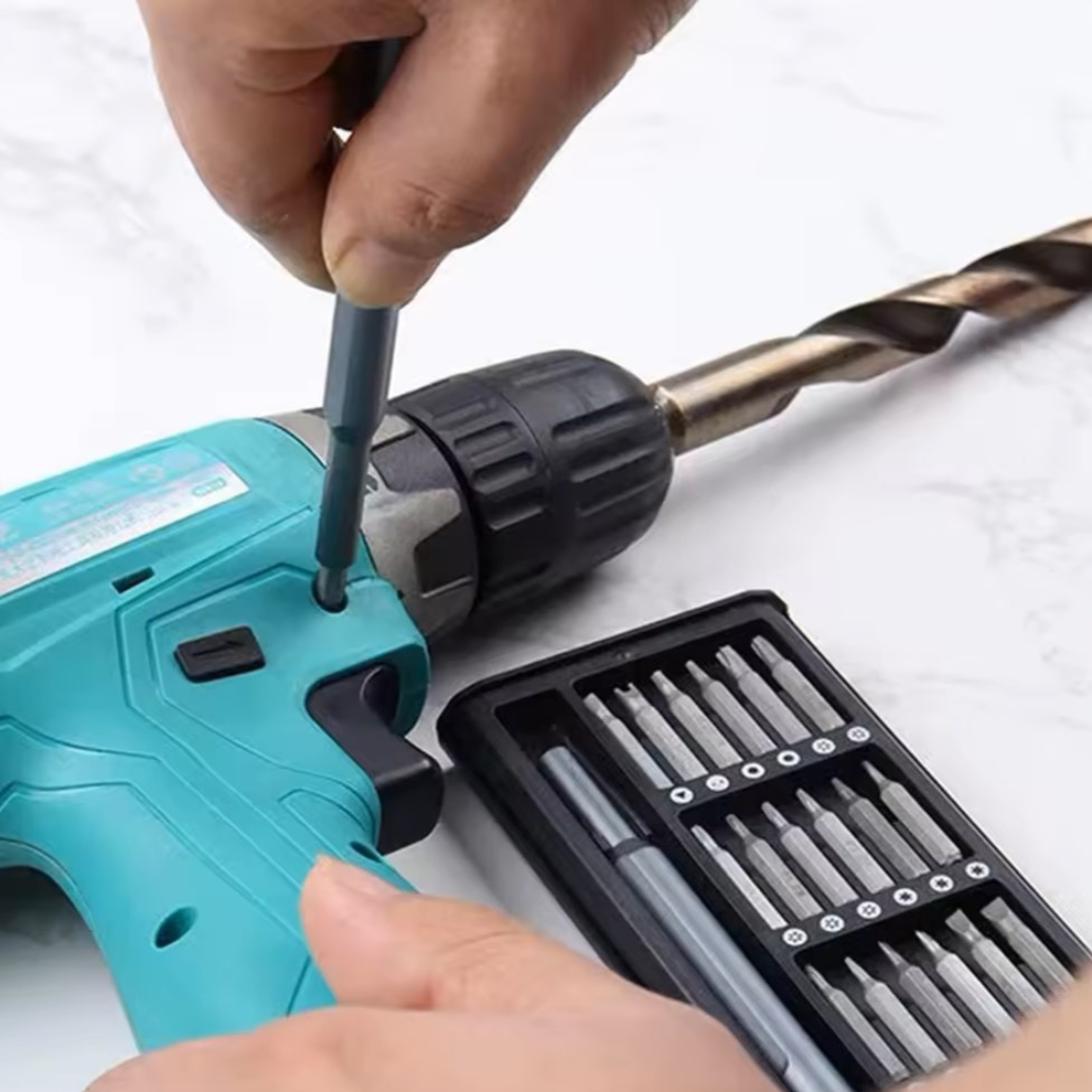 Acest set de 24 de piese include o mini șurubelniță portabilă, ideală pentru toate nevoile de reparații, fie că este vorba de proiecte casnice, bricolaj sau utilizare profesională. Cu un design compact, șurubelnița oferă libertate de mișcare și confort maxim în utilizare.