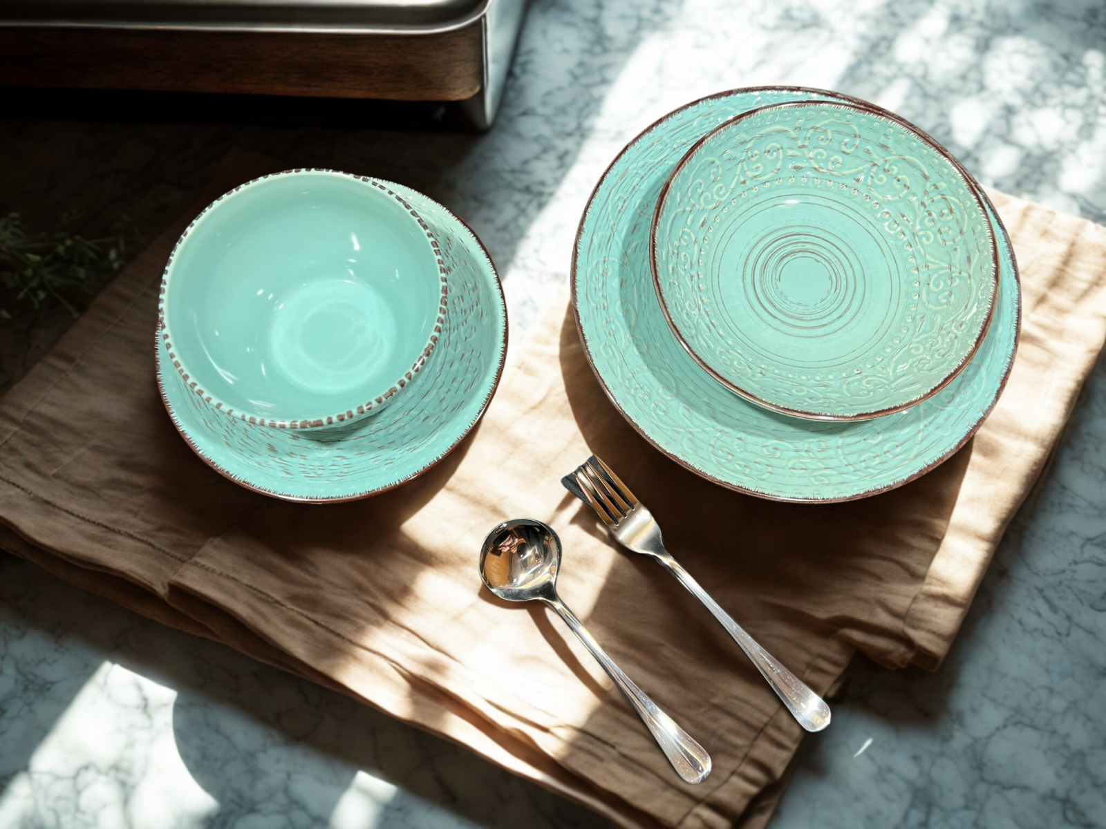 Adauga un plus de rafinament meselor tale cu acest set de vase ceramice deosebit, compus din 4 piese in nuante elegante de turcoaz, decorate cu un model embosat artistic si accente rustice la margini.