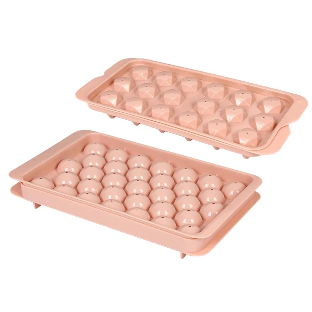 Tava pentru gheață cu formă sferică, reutilizabilă, 33 compartimente, culoare roz, ideală pentru băuturi rafinate.
