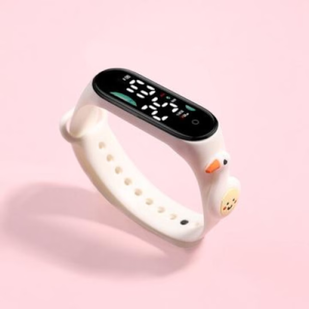 Ceas pentru Copii, cu bratara din silicon Nontoxic, baterie integrata, Cadran digital, Waterproof, Model Gâscă, Alb
