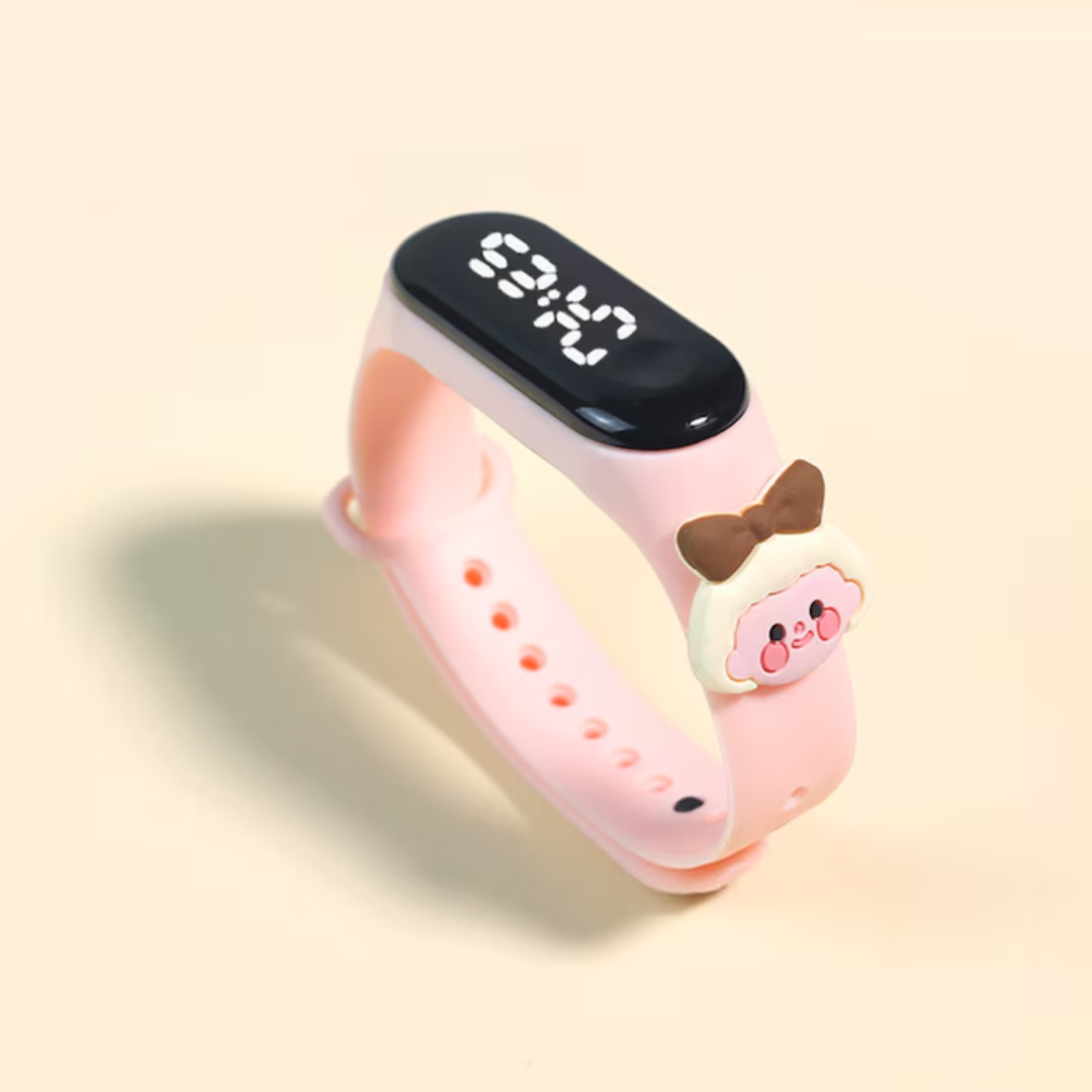 Ceas pentru Copii, cu bratara din silicon Nontoxic, baterie integrata, Cadran digital, Waterproof, Model Oiță cu fundiță, Roz