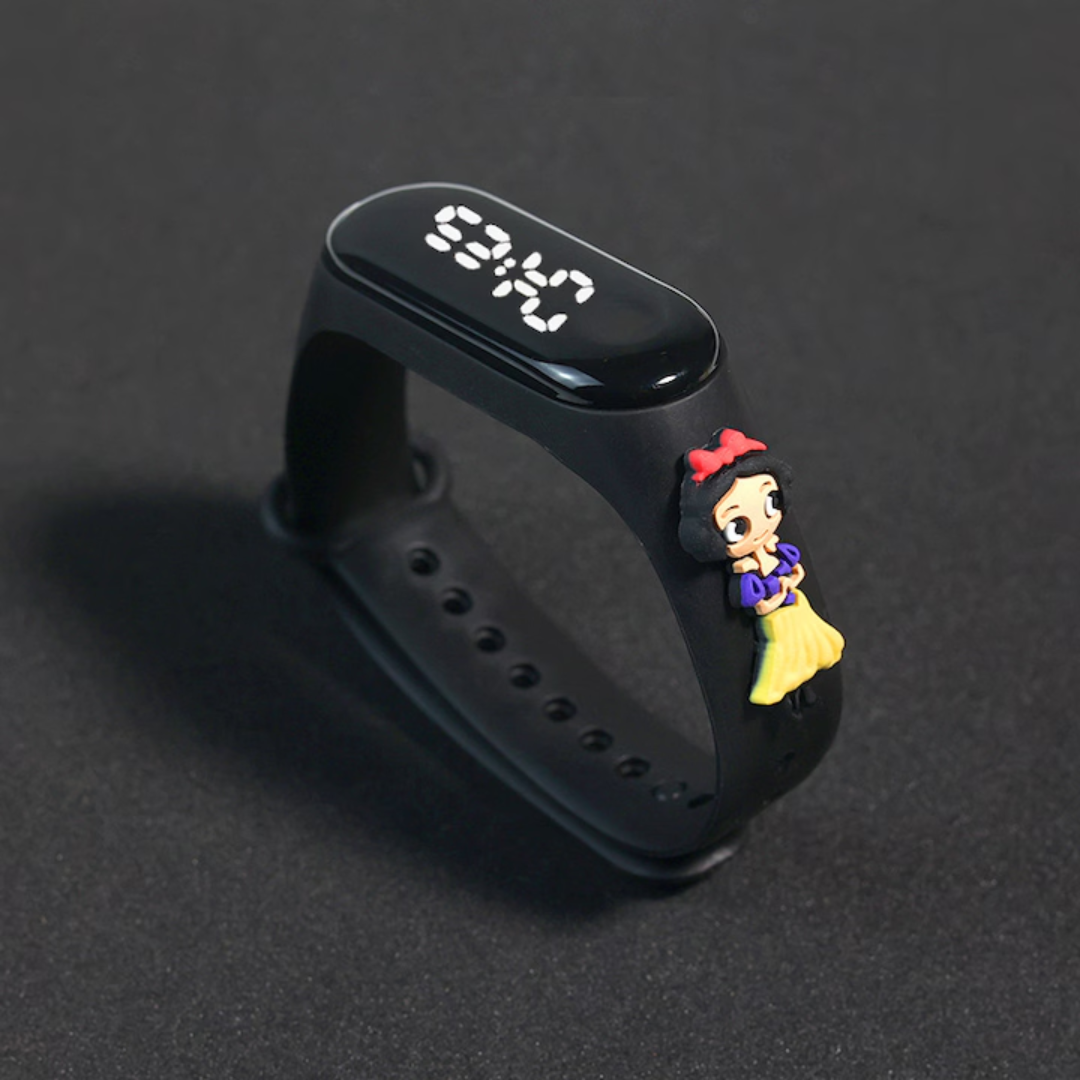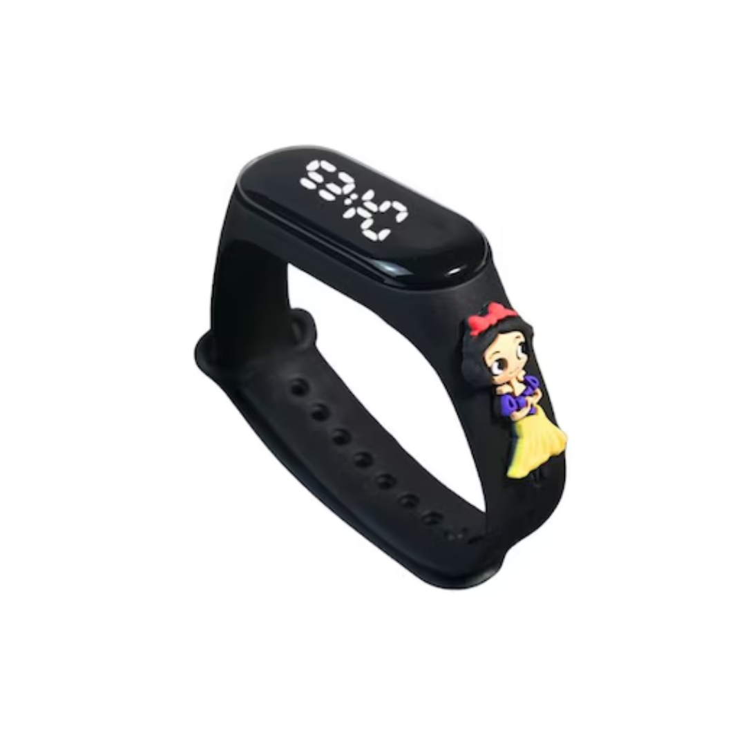 Ceas pentru Copii, cu bratara din silicon Nontoxic, baterie integrata, Cadran digital, Waterproof, Model Alba ca Zăpada, Negru
