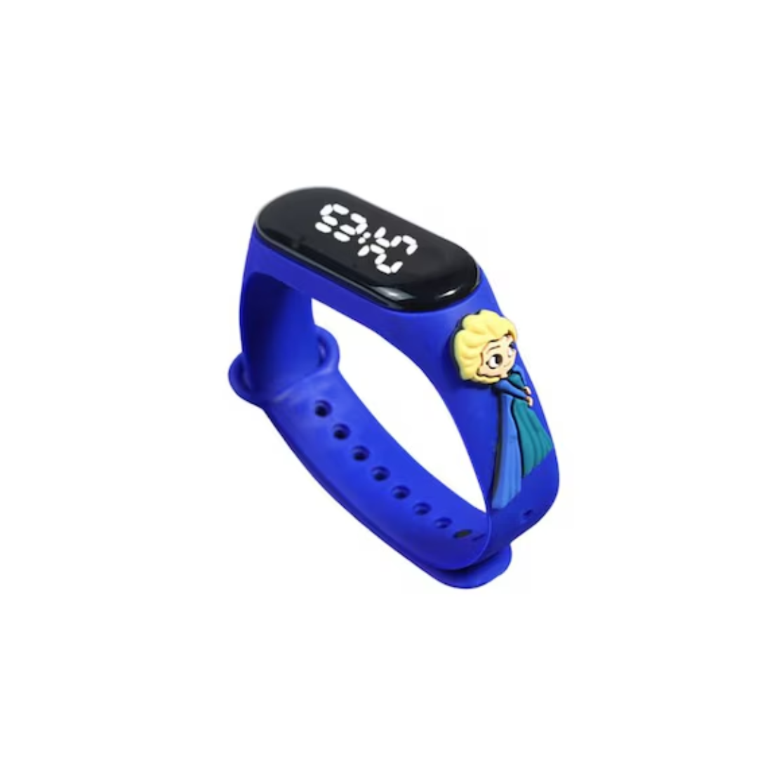 Ceas pentru Copii, cu bratara din silicon Nontoxic, baterie integrata, Cadran digital, Waterproof, Model Elsa, Albastru