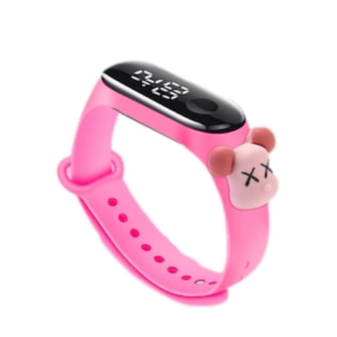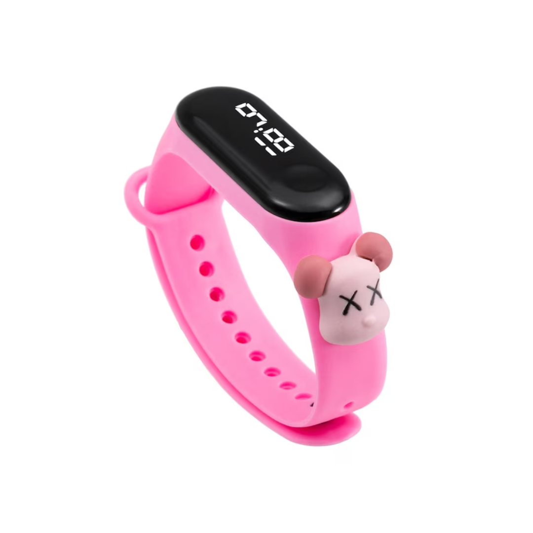 Ceas pentru Copii, cu bratara din silicon Nontoxic, baterie integrata, Cadran digital, Waterproof, Model Șoricel, Roz