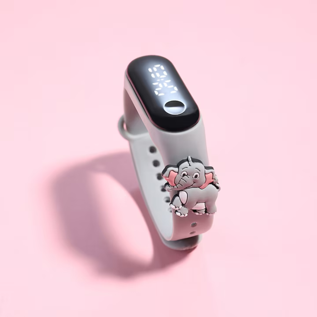 Ceas pentru Copii, cu bratara din silicon Nontoxic, baterie integrata, Cadran digital, Waterproof, Model Elefanțel, Gri