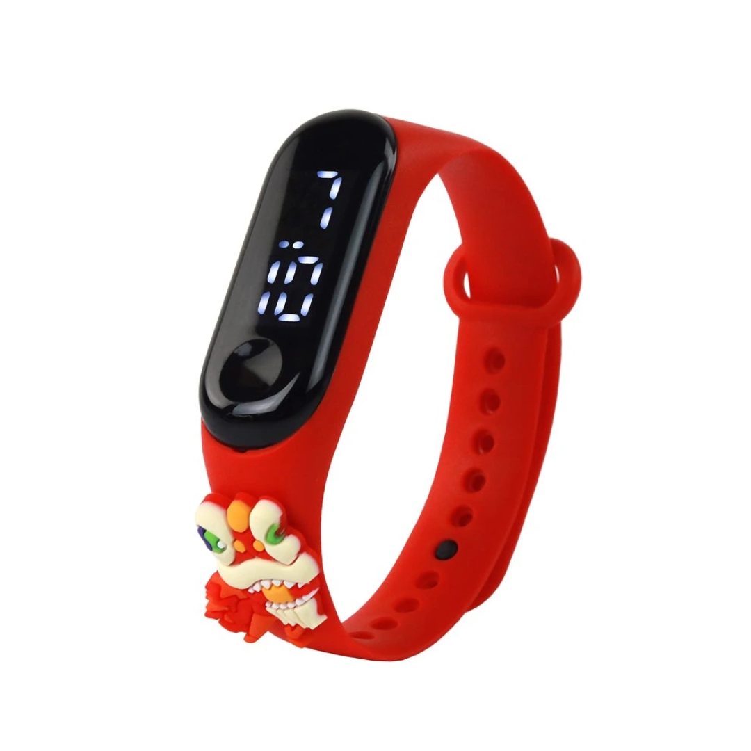 Ceas pentru Copii, cu bratara din silicon Nontoxic, baterie integrata, Cadran digital, Waterproof, Model Dragon, Rosu