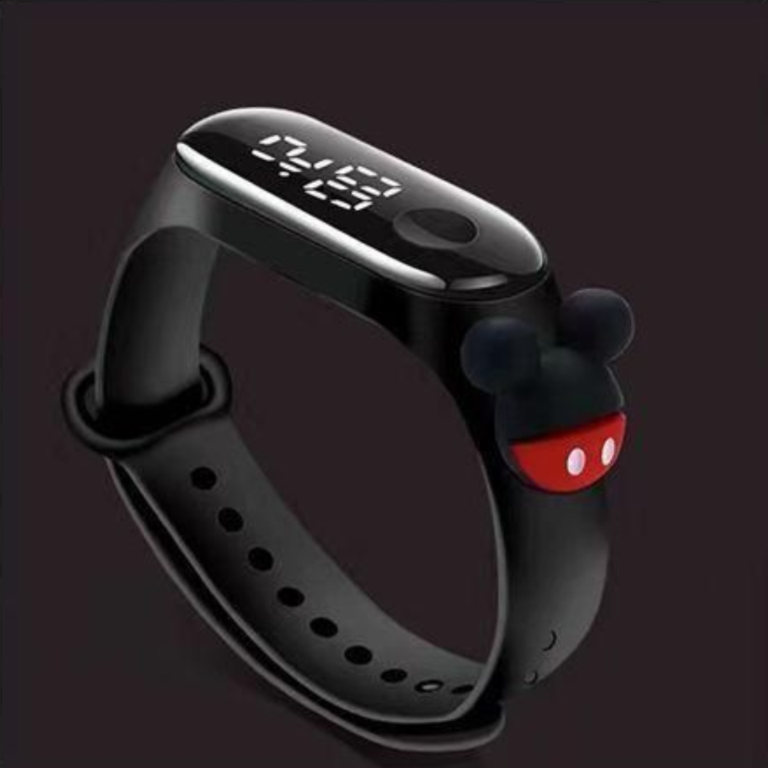 Ceas pentru Copii, cu bratara din silicon Nontoxic, baterie integrata, Cadran digital, Waterproof, Model Mickey Mouse, Negru