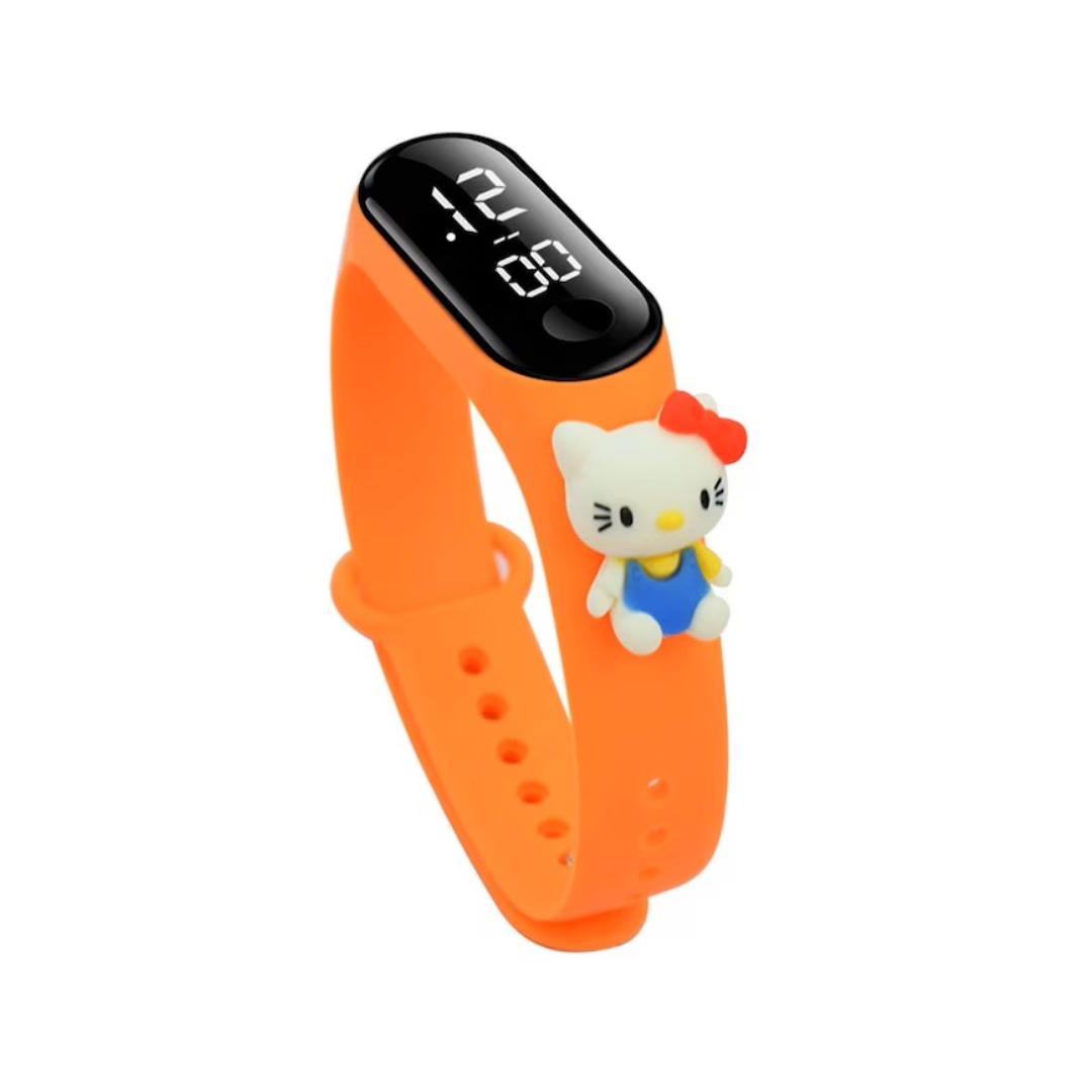 Ceas pentru Copii, cu bratara din silicon Nontoxic, baterie integrata, Cadran digital, Waterproof, Model Hello Kitty, Portocaliu