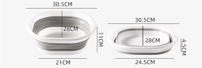 Lighean Pliabil, Multifunctional, Anti-alunecare, Poate fi atarnat, Design gauri de agatat, Mic si portabil, Usor de curatat, Pentru Baie, bucatarie, voiaj, PP, TPE, marime M, Alb/Gri, 30 x 11 cm