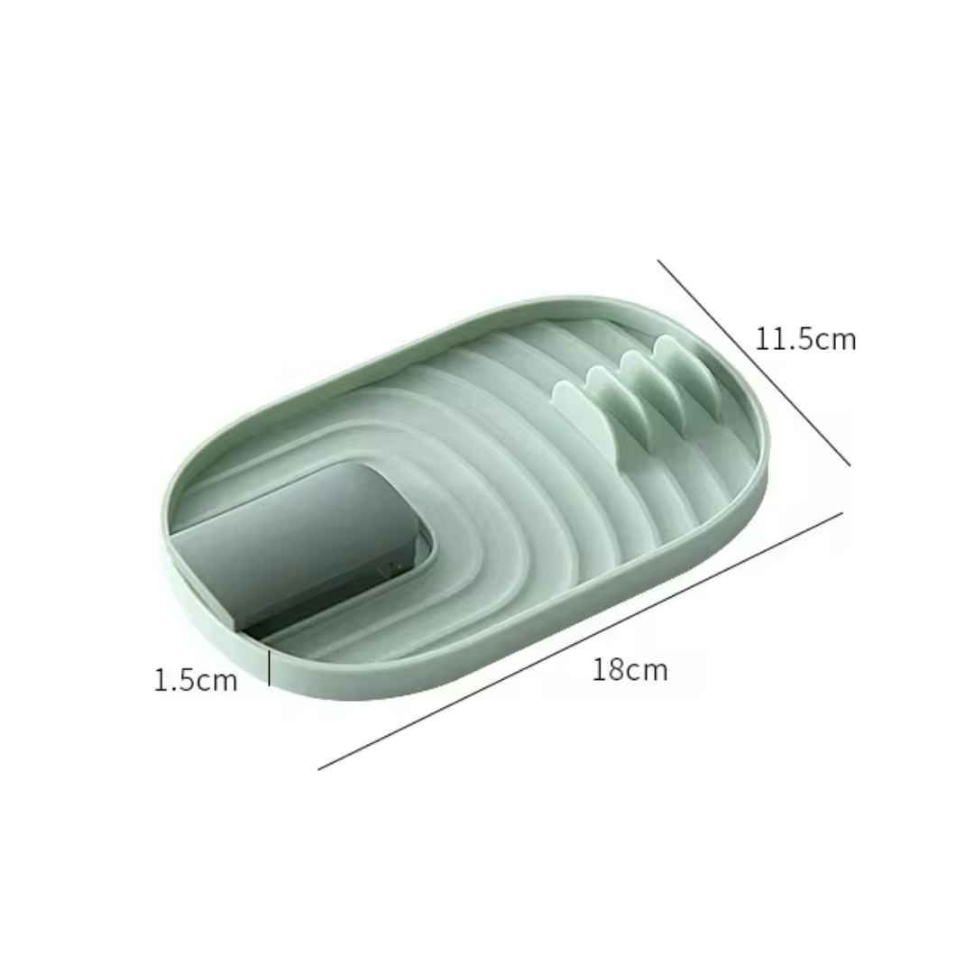 Îți dorești o bucătărie mereu curată și organizată? Acest suport verde pentru ustensile și capac este alegerea perfectă pentru a preveni murdăria și a-ți menține spațiul de lucru ordonat. Proiectat pentru a acomoda până la patru linguri sau spatule și un capac, suportul colectează eficient orice resturi alimentare și picături, protejând blatul de lucru.