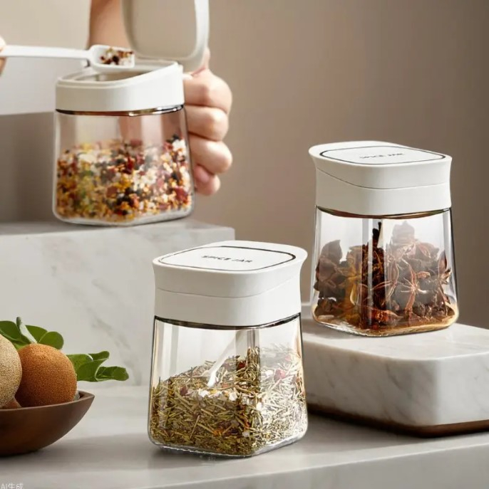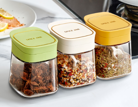 Tip Produs: Dozator pentru condimente din sticla cu capac etans si lingurita din plastic