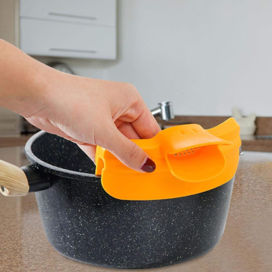 Strecurătoare din silicon cu funcție anti-stropire, ușor de curățat și durabilă, perfectă pentru diverse vase și recipiente.