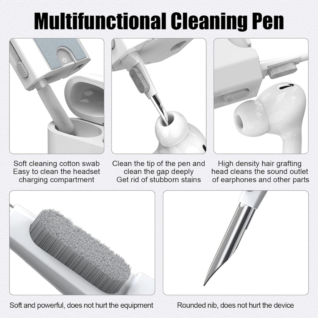 Kitul include un stilou de curățare cu vârf precis și moale, ideal pentru a elimina cu grijă murdăria din cele mai mici colțuri ale căștilor, fără a afecta componentele delicate. O perie cu peri moi și denși este perfectă pentru îndepărtarea prafului și a particulelor din zonele greu accesibile, cum ar fi grilele difuzoarelor sau tastele tastaturii.