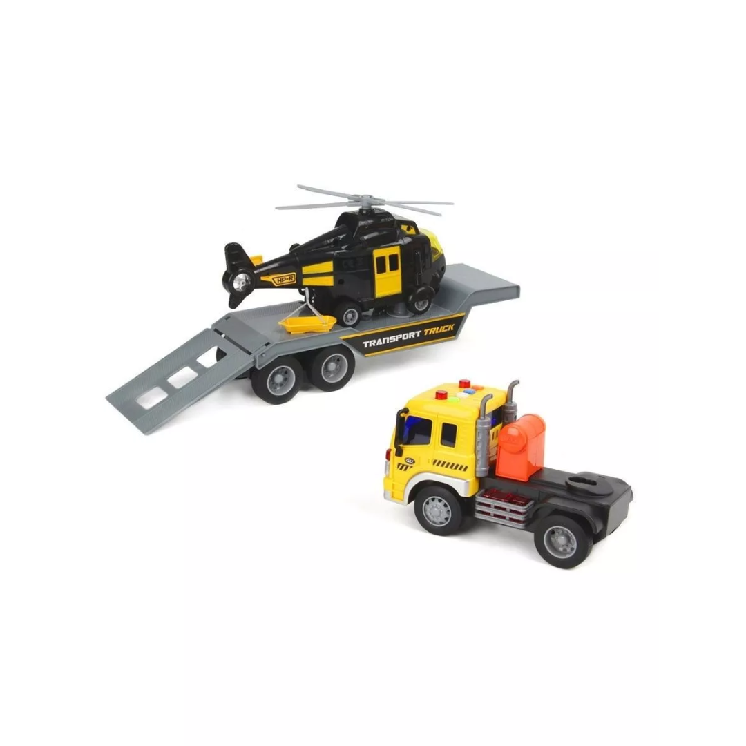 Set interactiv cu camion și elicopter, dotat cu lumini și sunete captivante pentru o joacă realistă.
