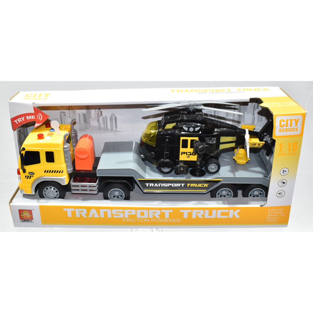 Camion cu platformă și elicopter