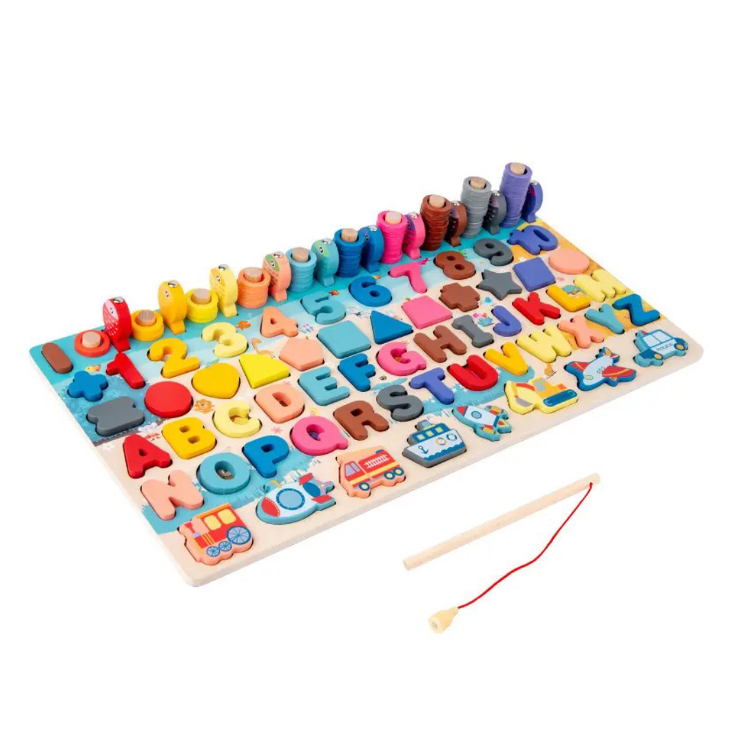 Descoperă placa de lemn interactivă, perfectă pentru dezvoltarea creativității și a abilităților motorii ale copiilor. Această placă este dotată cu cifre, litere, semne matematice, precum și cu piese reprezentând fructe, animăluțe și mașini. Fiecare piesă este echipată cu un magnet, facilitând astfel „pescuirea” lor de către cei mici cu ajutorul undiței incluse.
