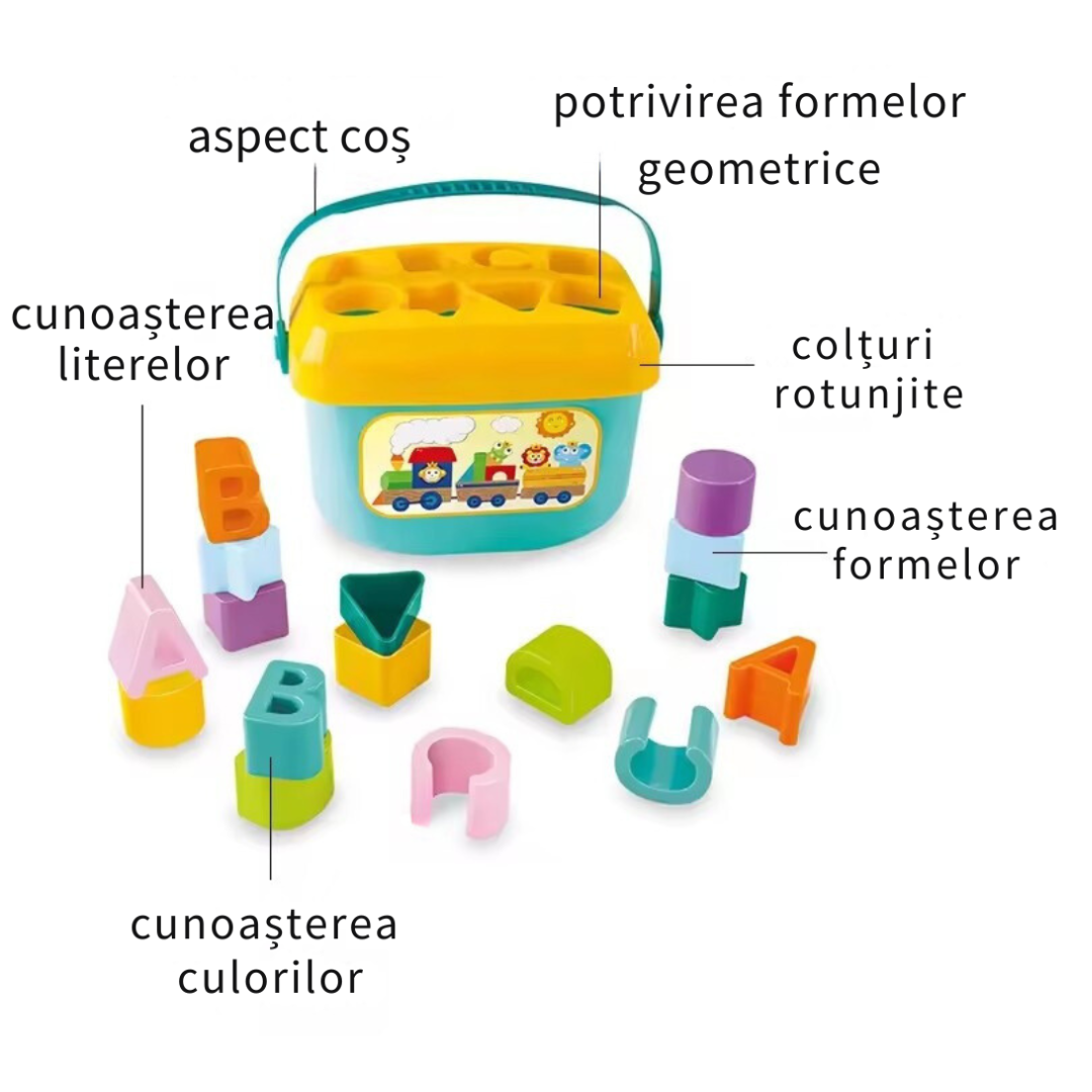 Sortarea și potrivirea pieselor îi ajută pe cei mici să dezvolte coordonarea mână-ochi și dexteritatea, în timp ce învăță prin joc. Cutia de depozitare cu funcție de sortare promovează organizarea și îi încurajează pe copii să exploreze diferitele forme și litere. Fabricată din materiale sigure și durabile, jucăria este non-toxică și rezistă la utilizarea frecventă.