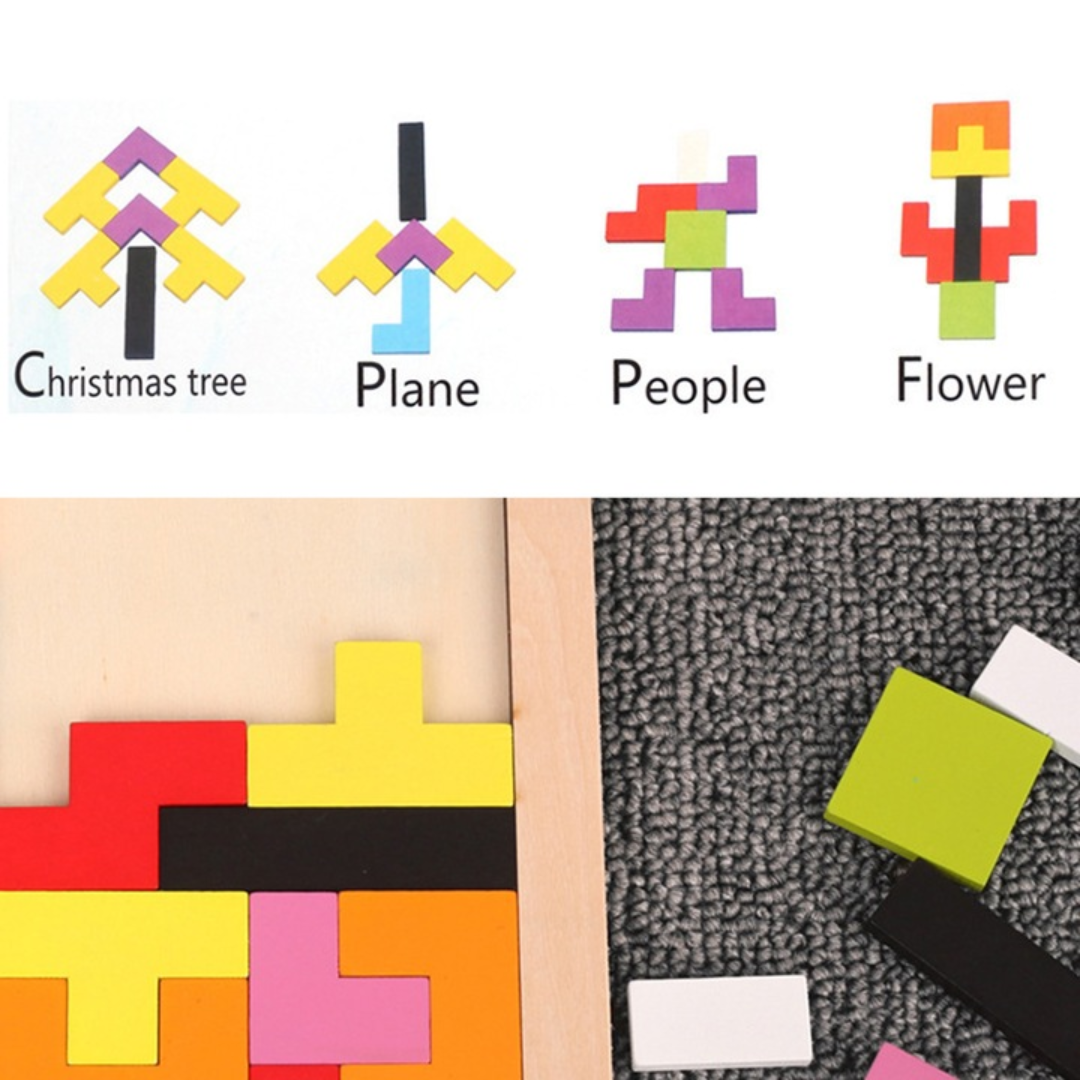 O placă din lemn cu joc Tetris educativ, ideală pentru dezvoltarea creativității și a logicii copiilor.