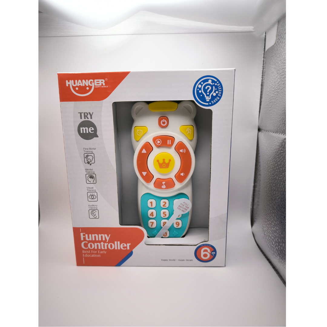 Telecomanda interactivă pentru bebeluși este jucăria perfectă pentru micuții care își doresc să imite activitățile părinților. Aceasta este dotată cu 17 taste, fiecare oferind o varietate de sunete și efecte luminoase care captează atenția și stimulează simțurile vizuale și auditive ale bebelușului. Sunetele și luminițele atrag interesul celor mici, încurajându-i să experimenteze activ în timpul jocului. Telecomanda ajută la dezvoltarea abilităților motorii fine și a curiozității, fiind ideală pentru vârsta de 6 luni+.
