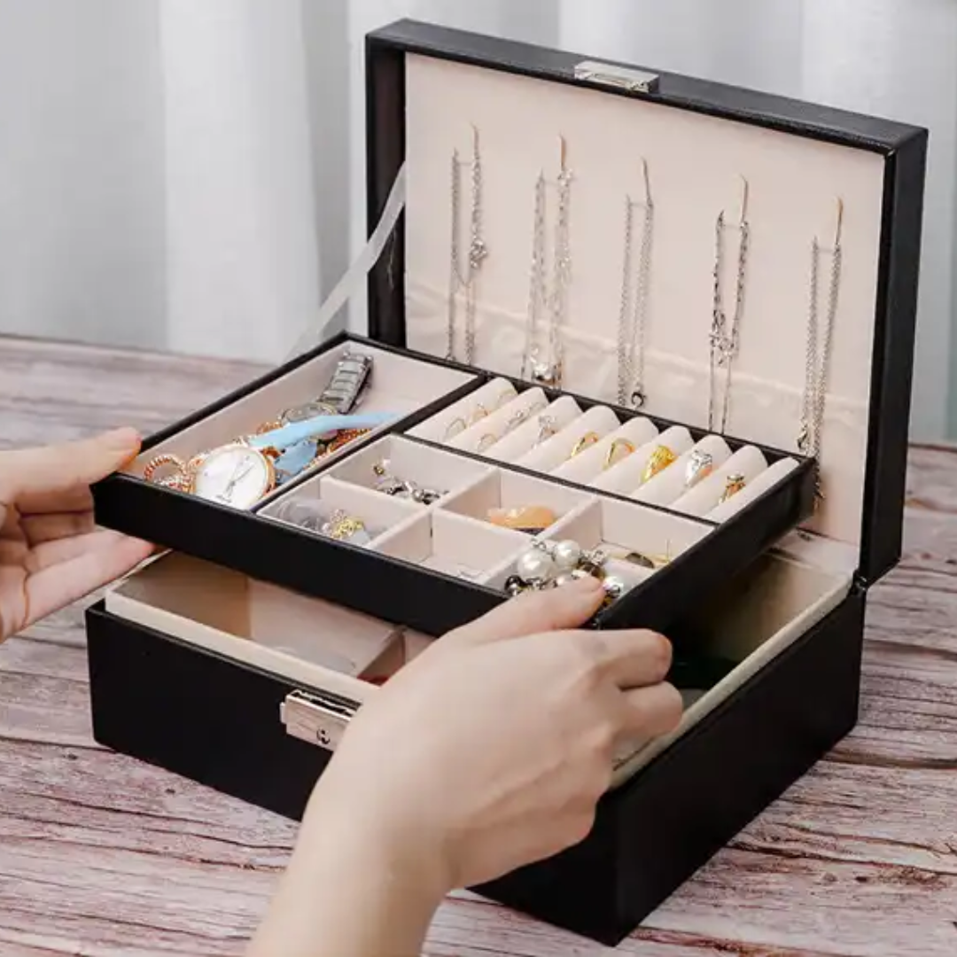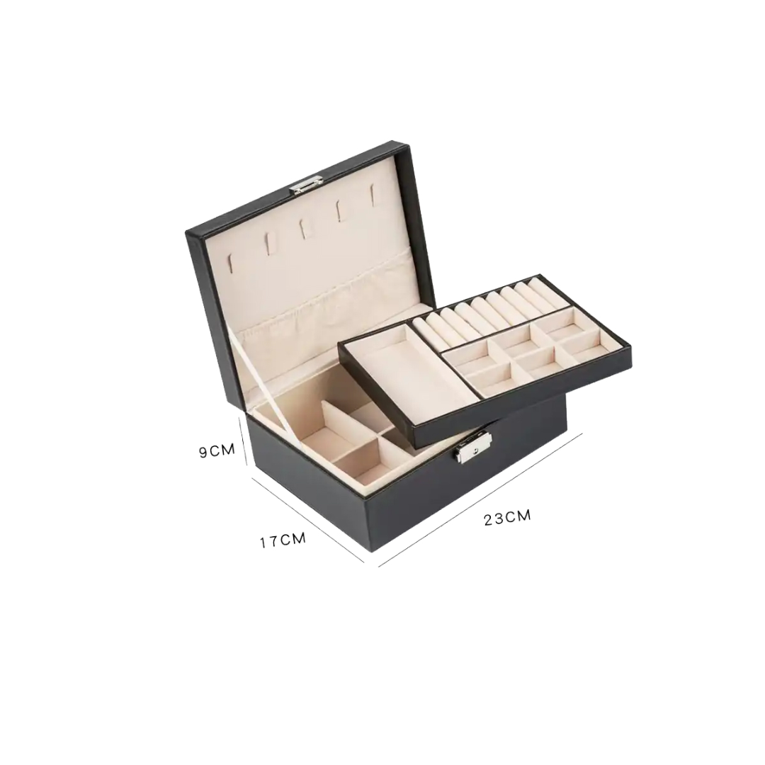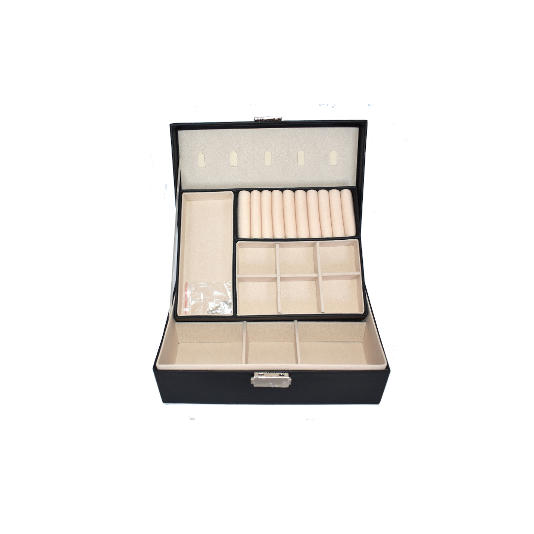 Cele două compartimente oferă spațiu suficient pentru a organiza diverse tipuri de bijuterii, precum inele, cercei, coliere și brățări. Designul interior este gândit pentru a preveni încurcarea sau deteriorarea bijuteriilor.