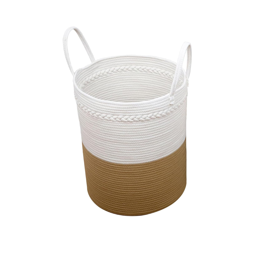 Acest coș de depozitare impresionează prin designul său modern, fiind nu doar practic, ci și un element decorativ atractiv în orice cameră. Fabricat din frânghii de bumbac țesute, material cunoscut pentru respirabilitate, moliciune și durabilitate, acest coș este o alegere ecologică și de încredere pentru orice spațiu.