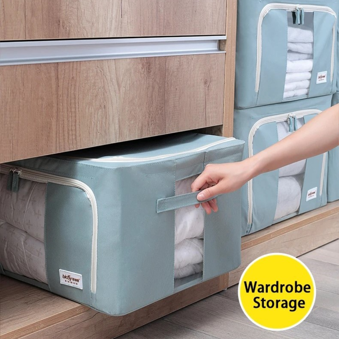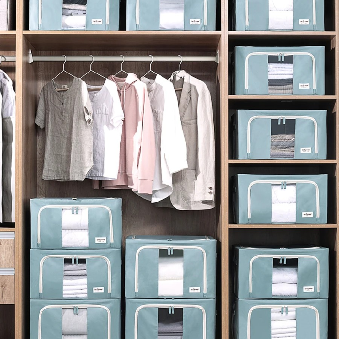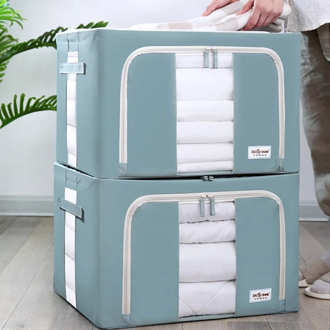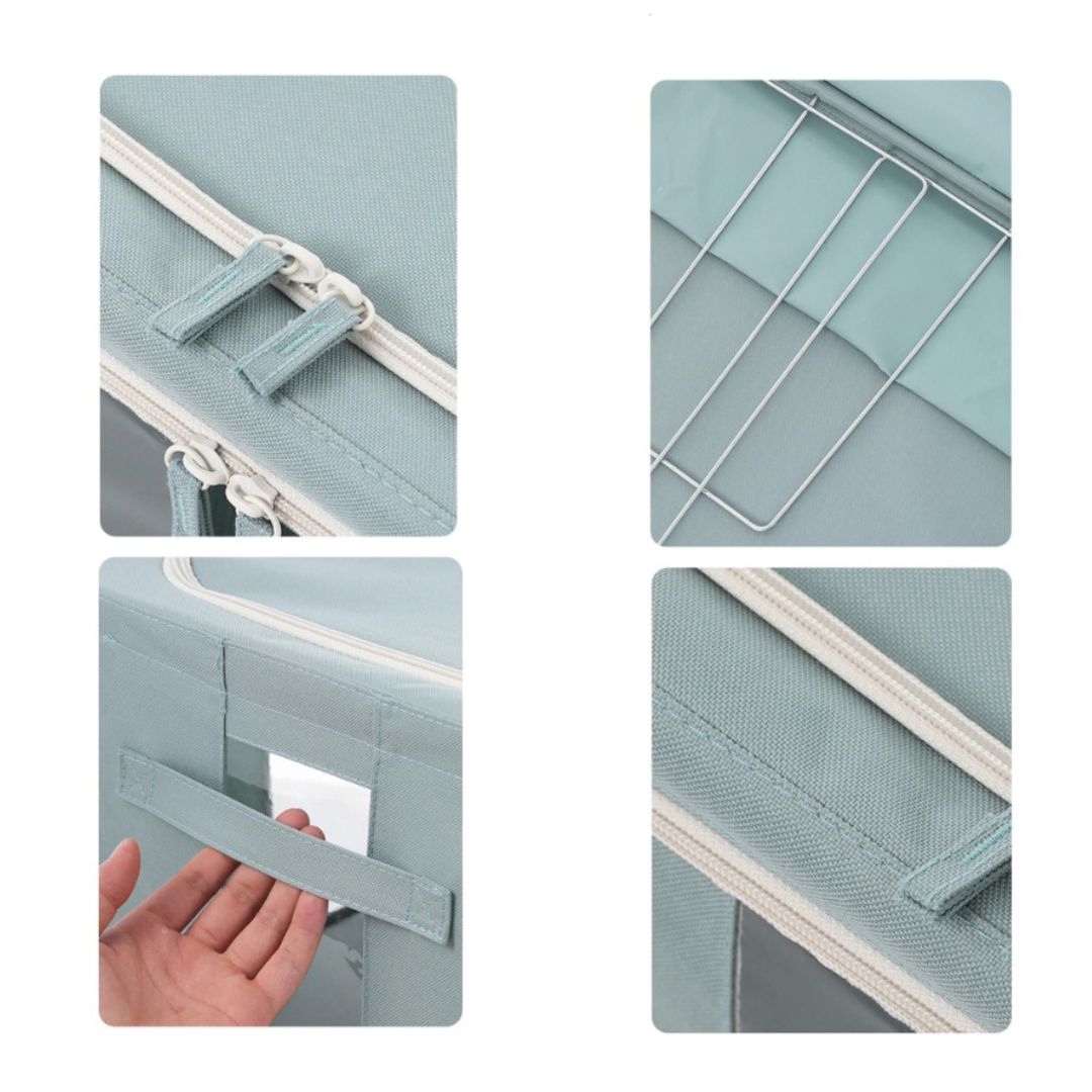 Inovația întâlnește practicitatea cu această cutie pliabilă pentru depozitare, ideală pentru organizarea hainelor, lenjeriilor, pilotelor și pernelor. Cu un fermoar de deschidere dublă în partea superioară și în partea din față, accesul la conținutul cutiei este simplu și rapid, fără a fi nevoie să scoți totul din cutie pentru a ajunge la obiectele din partea de jos.