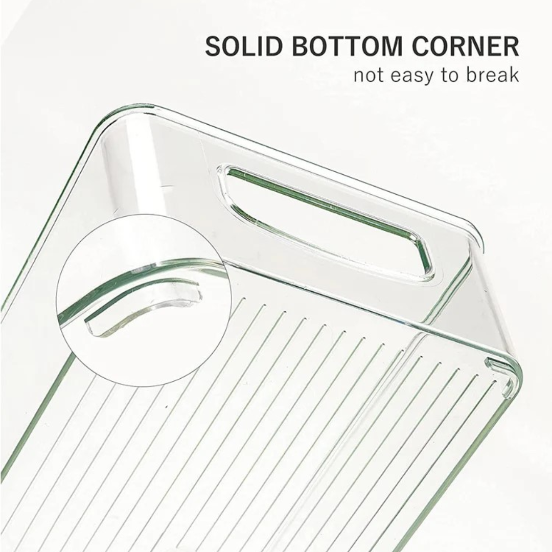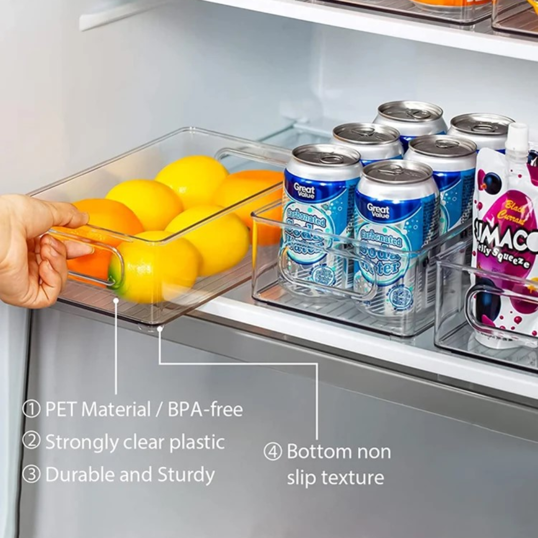 Acest set de 6 organizatoare pentru frigider este conceput pentru a crea un spațiu curat și ordonat. Cu mânere laterale integrate, cu prindere ușoară, transportul devine simplu și comod. Aceste coșuri sunt funcționale și versatile, putând fi așezate cu ușurință unul lângă altul pentru o organizare instantanee în orice cameră, nu doar în frigider.