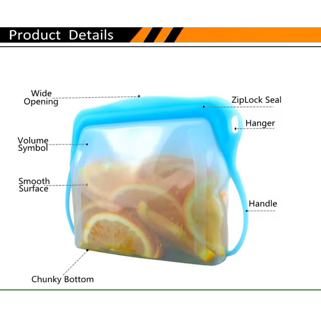 Fabricată din silicon alimentar de înaltă calitate, punga oferă durabilitate și versatilitate. Este ideală pentru depozitarea legumelor, fructelor, produselor lactate, cărnii, lichidelor sau chiar a produselor cosmetice, păstrându-le în condiții optime de prospețime și siguranță.