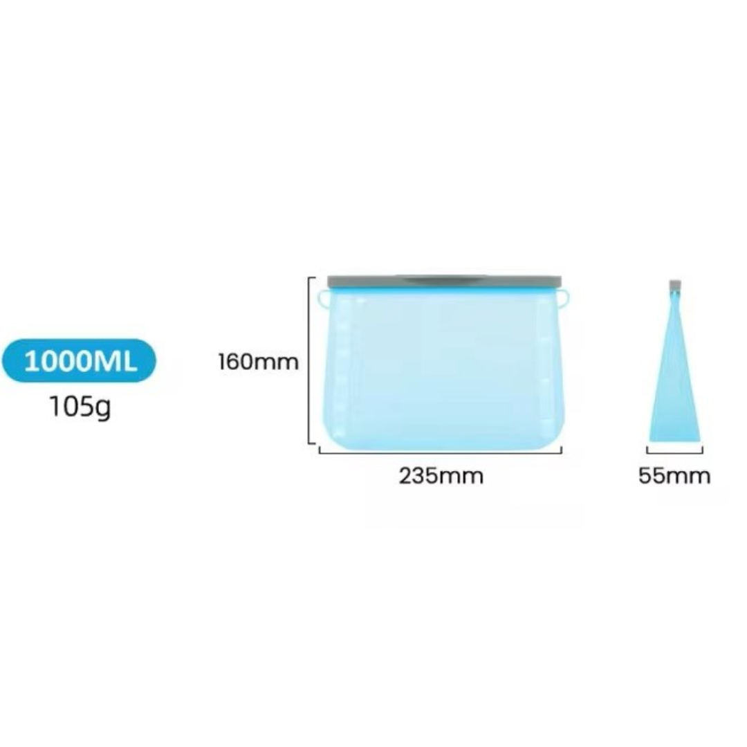 Pungă reutilizabilă din silicon de 1500 ml, cu închidere Ziploc ermetică, perfectă pentru depozitarea alimentelor.
